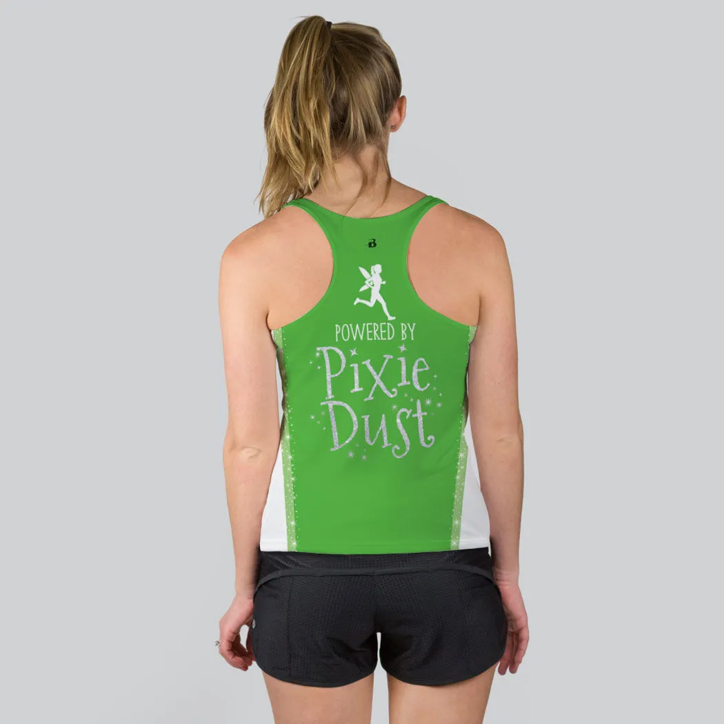 Need that little extra pick me up to get through those tough runs all you need is a little bit of pixie dust on your performance tank to power you through. The polyester microfiber keeps runners cool and dry, even when it’s warm or hot, and is designed to perform, no matter how long the race may be. The unique design appears as if it is a strapless green top covered in a silver sparkle pattern that will be accentuated as a runner’s body moves, this unique singlet is sure to stand out in any race and will be a favorite for any runner who loves all things beautiful and magical – as well as being comfortable when running.