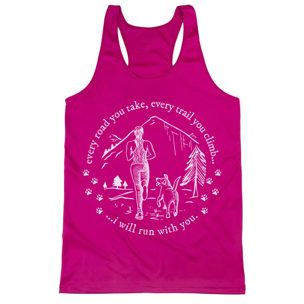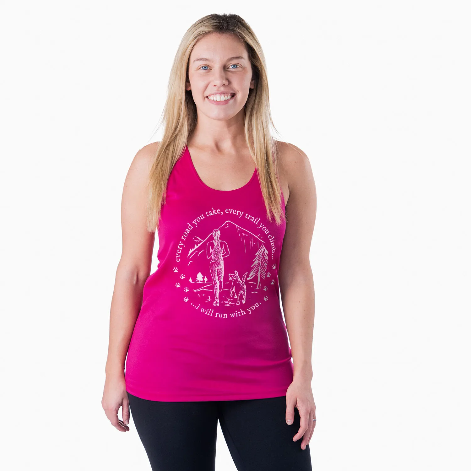 Show off your love for your fur best friend in our women’s racerback performance tank top featuring a dog themed design inspired by running. Our racerback scoop neck tank is made from 100% polyester to keep runners dry and cool. This performance tank offers a comfortable and A-line fit that pairs great with any choice of bottoms from leggings and athletic tights to jeans and shorts. This stylish tank is perfect for everyday wear and an ideal running gift for any occasion.