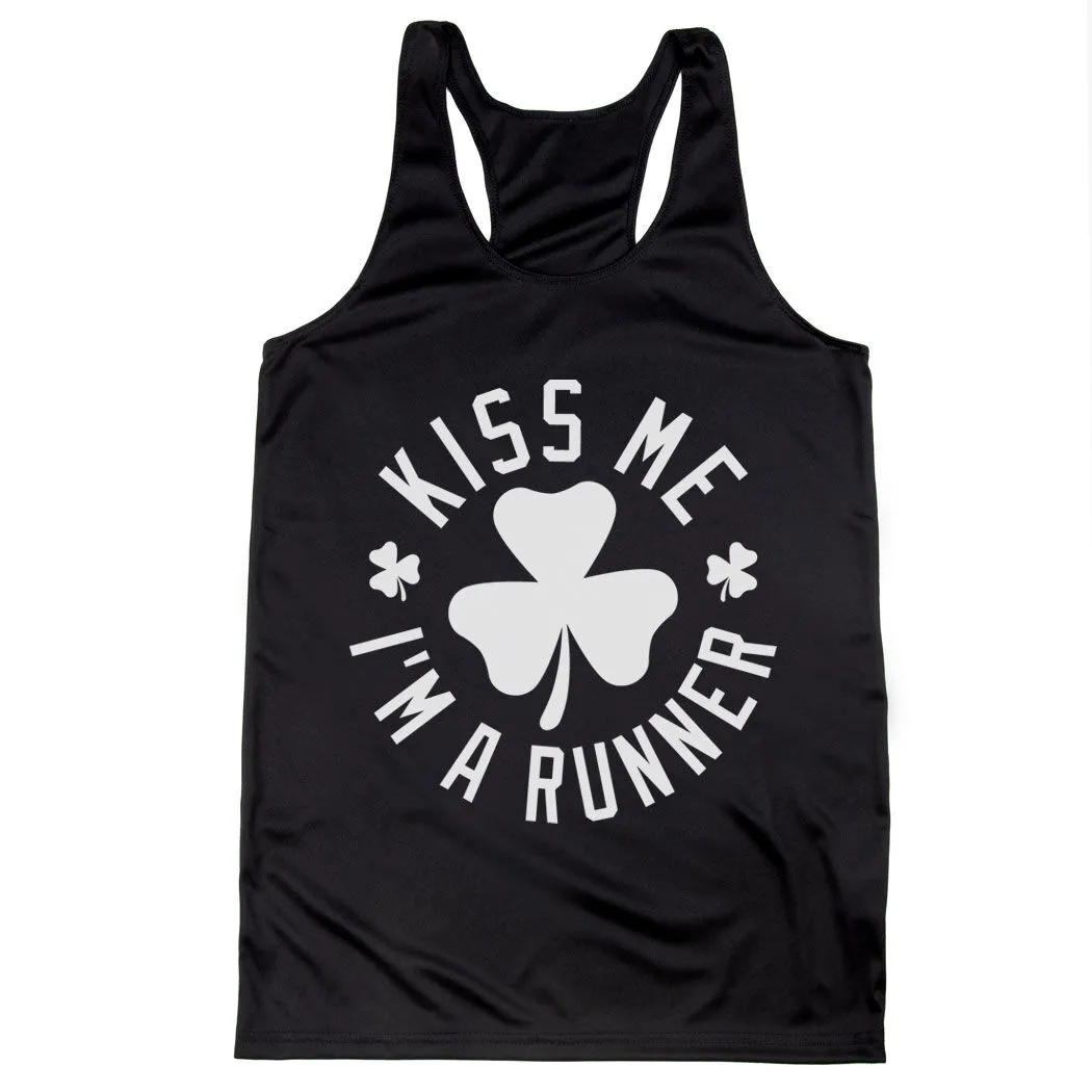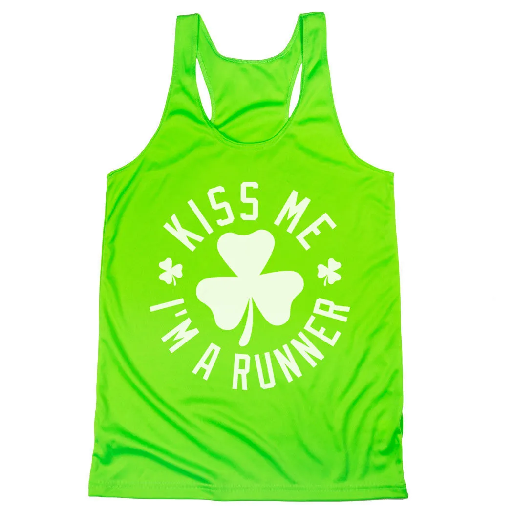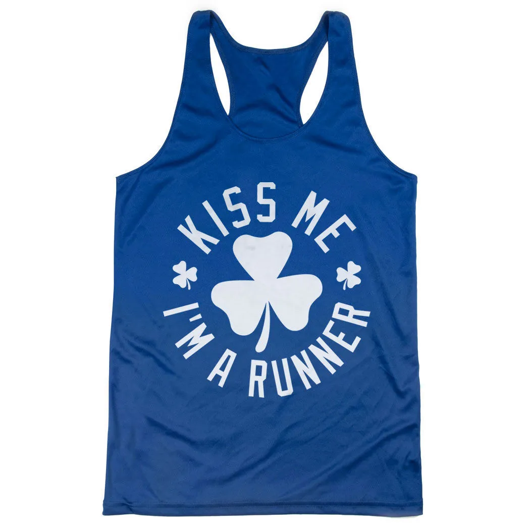 Women’s Racerback Performance Tank Top – Kiss Me I Am A Runner Shamrock