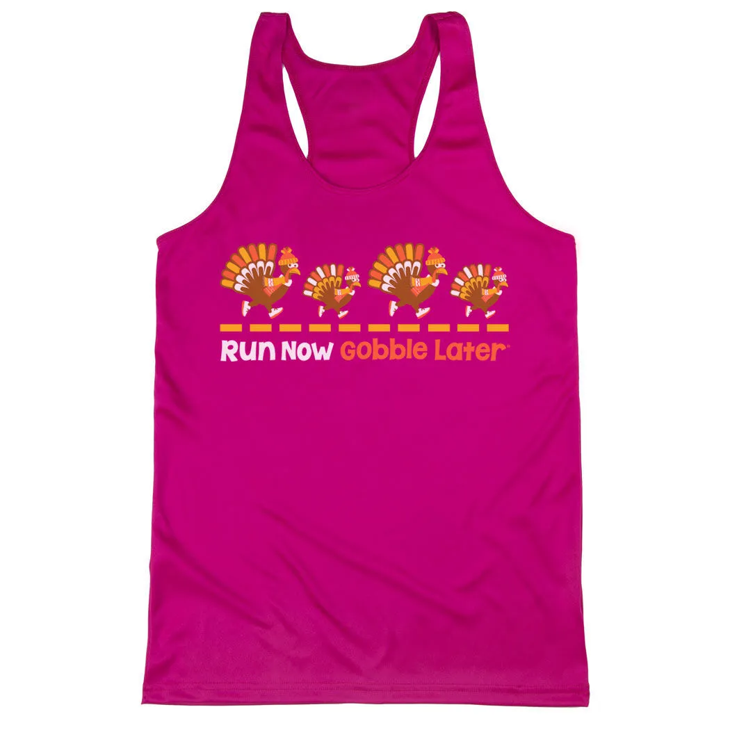 Get in the holiday spirit in our women’s racerback performance tank top featuring a one-of-a-kind Thanksgiving design inspired by running. Our racerback scoop neck tank is made from 100% polyester to keep runners dry and cool. This performance tank offers a comfortable and A-line fit that pairs great with any choice of bottoms from leggings and athletic tights to jeans and shorts. This stylish tank is perfect for everyday wear and an ideal running gift for any occasion. Any runner would love this for any turkey race.