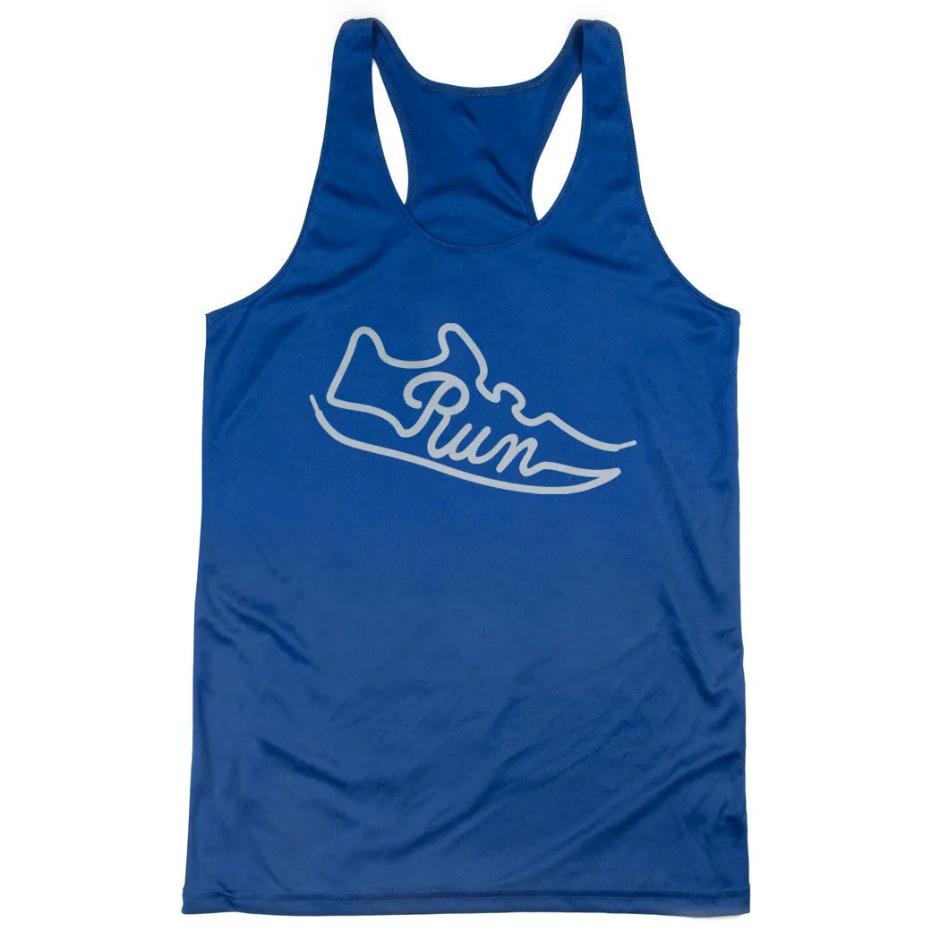 Show off your running pride in our women’s racerback performance tank top featuring a one-of-a-kind Run Shoe design. Our racerback scoop neck tank is made from 100% polyester to keep runners dry and cool. This performance tank offers a comfortable and A-line fit that pairs great with any choice of bottoms from leggings and athletic tights to jeans and shorts. This stylish tank is perfect for everyday wear and an ideal running gift for any occasion.