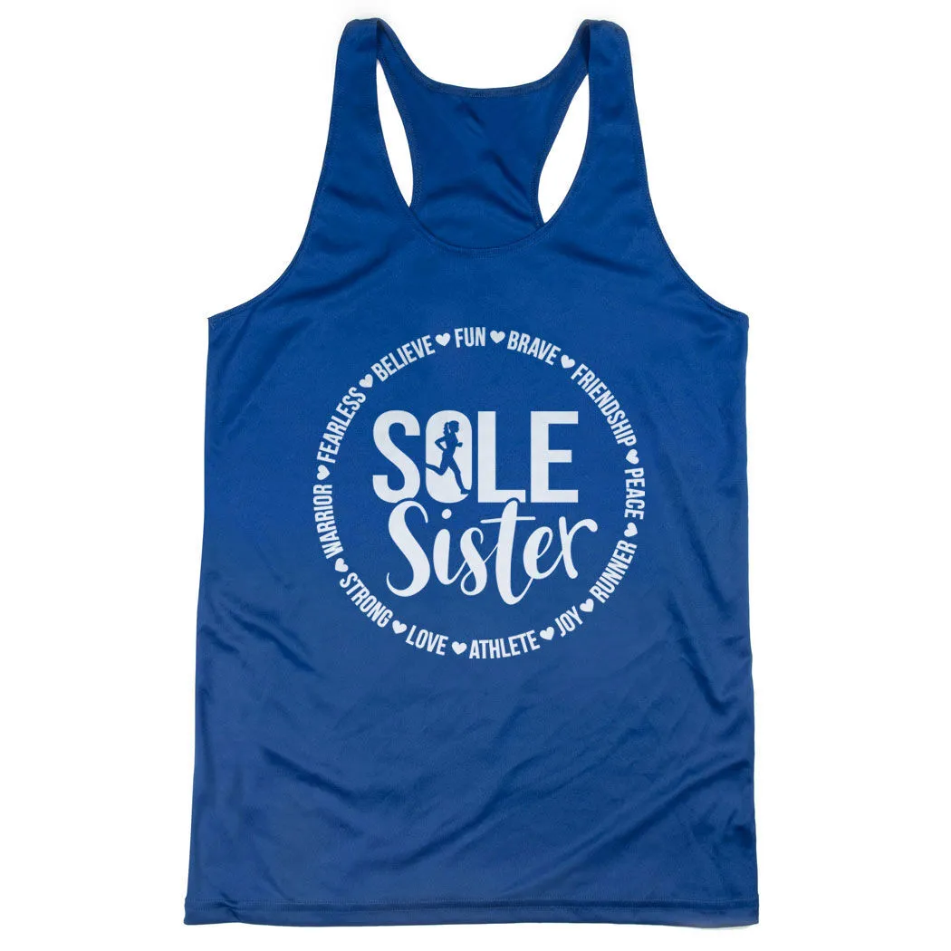 Show off your sole sister pride in our women’s racerback performance tank top. Our racerback scoop neck tank is made from 100% polyester to keep runners dry and cool. This performance tank offers a comfortable and A-line fit that pairs great with any choice of bottoms from leggings and athletic tights to jeans and shorts. This stylish tank is perfect for everyday wear and an ideal running gift for any occasion. Grab your best friend and run those miles together in this stylish top.