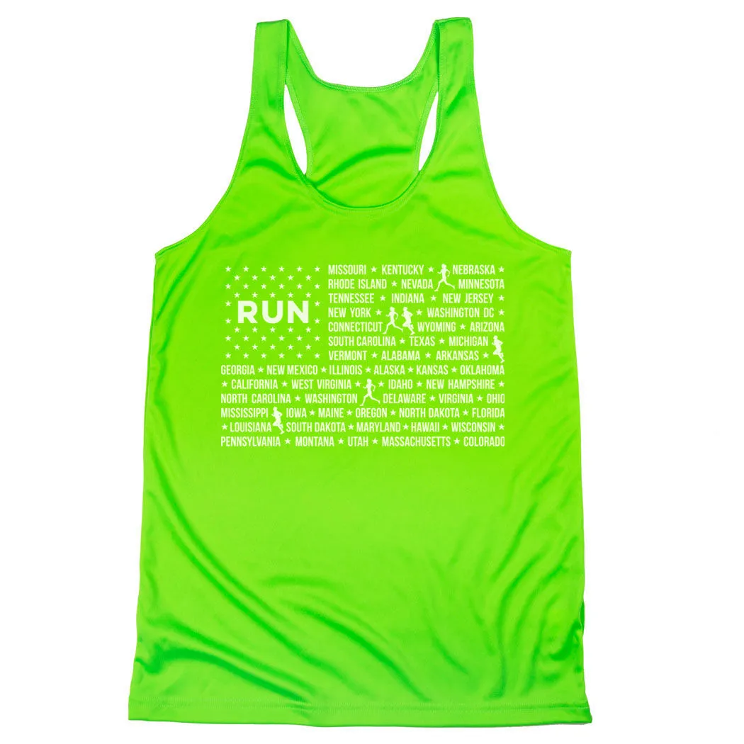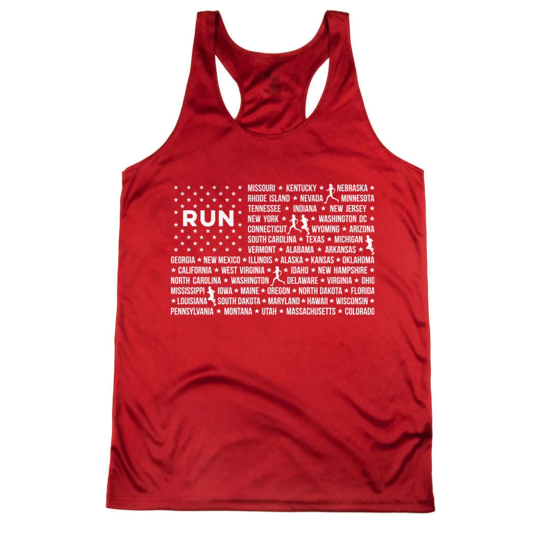 Show off your American pride in our women’s racerback performance tank top featuring a one-of-a-kind Patriotic design inspired by running. Our racerback scoop neck tank is made from 100% polyester to keep runners dry and cool. This performance tank offers a comfortable and A-line fit that pairs great with any choice of bottoms from leggings and athletic tights to jeans and shorts. This stylish tank is perfect for everyday wear and an ideal running gift for any occasion.