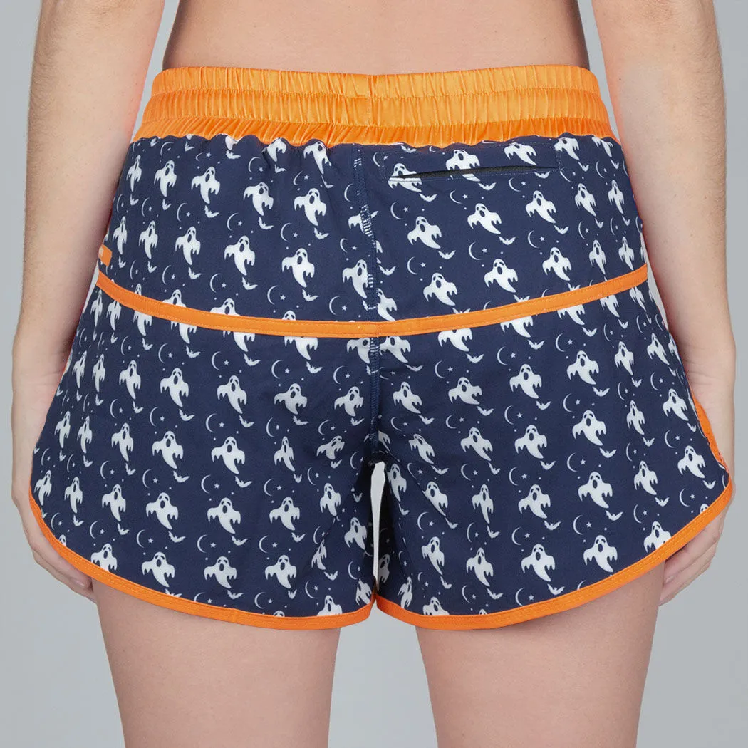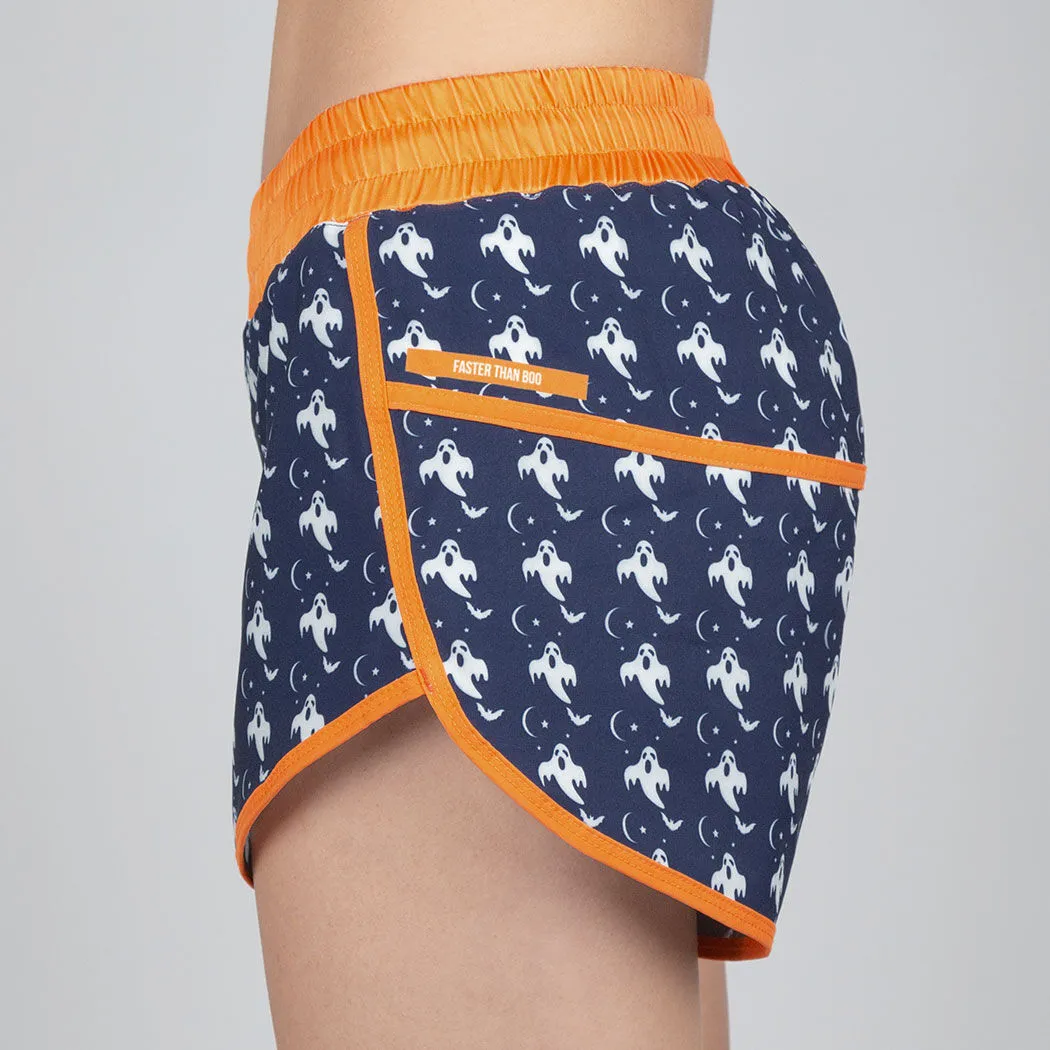 Our lightweight and moisture-wicking women’s Faster Than Boo shorts are perfect for any run or activity. The RunTechnology® performance polyester dries quickly to keep runners and athletes stay dry and cool. With a high cut hem and lightweight mesh brief liner, the shorts ensure comfort and enhanced mobility. The elastic waistband lies flat and has a hidden continuous loop for adjustable fit. The shorts are also equipped with a zippered back pocket to hold your essentials such as your phone, card, or gels. Additionally, the shorts include a motivational message tucked along the left hem – sometimes humorous, but always inspiring. These stylish athletic shorts are sure to quickly become one of your favorites to wear during any and all activities.