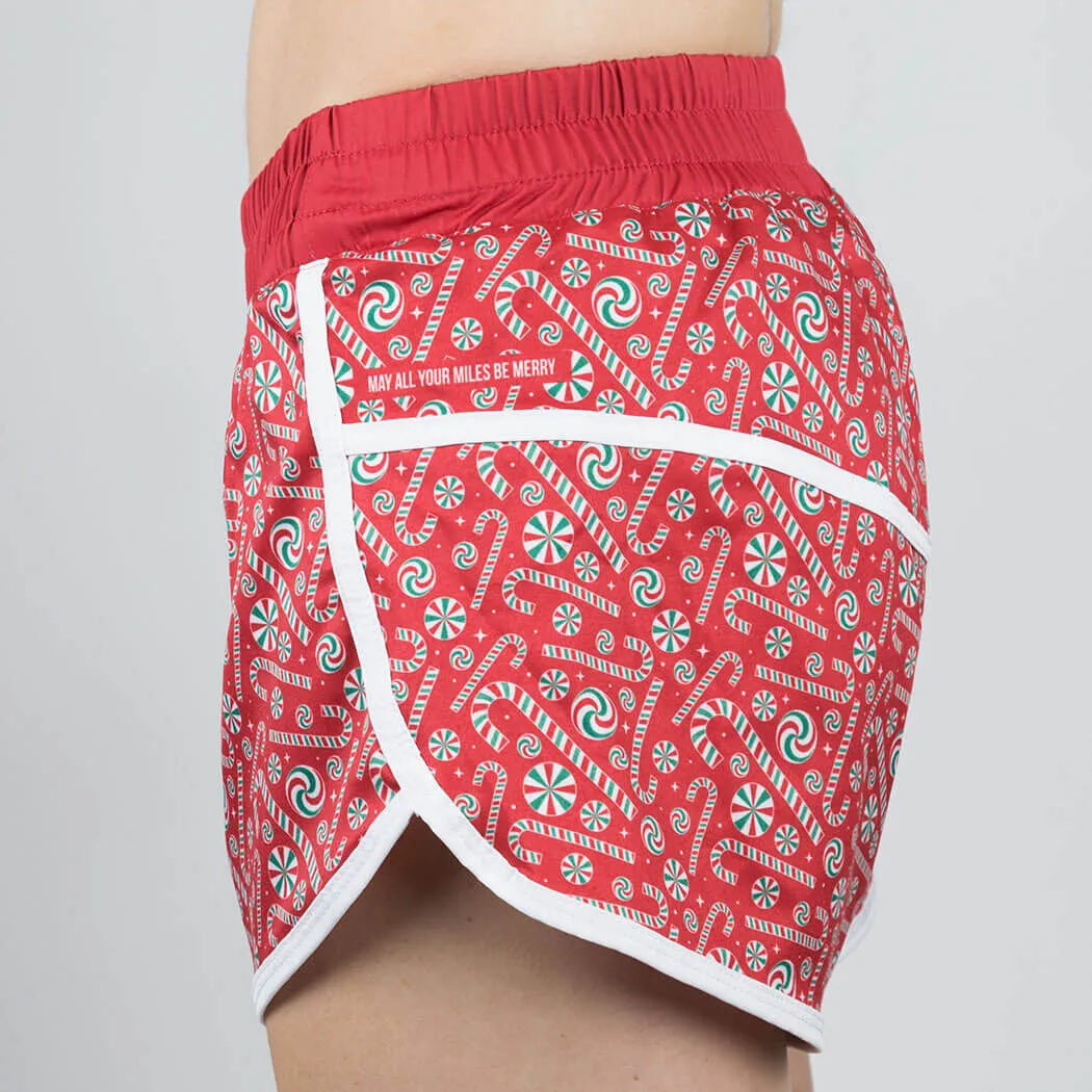 Our lightweight and moisture-wicking women’s Merry Miles shorts are perfect for any run or activity. The RunTechnology® performance polyester dries quickly to keep runners and athletes stay dry and cool. With a high cut hem and lightweight mesh brief liner, the shorts ensure comfort and enhanced mobility. The elastic waistband lies flat and has a hidden continuous loop for adjustable fit. The shorts are also equipped with a zippered back pocket to hold your essentials such as your phone, card, or gels. Additionally, the shorts include a motivational message tucked along the left hem – sometimes humorous, but always inspiring. These stylish athletic shorts are sure to quickly become one of your favorites to wear during any and all activities.