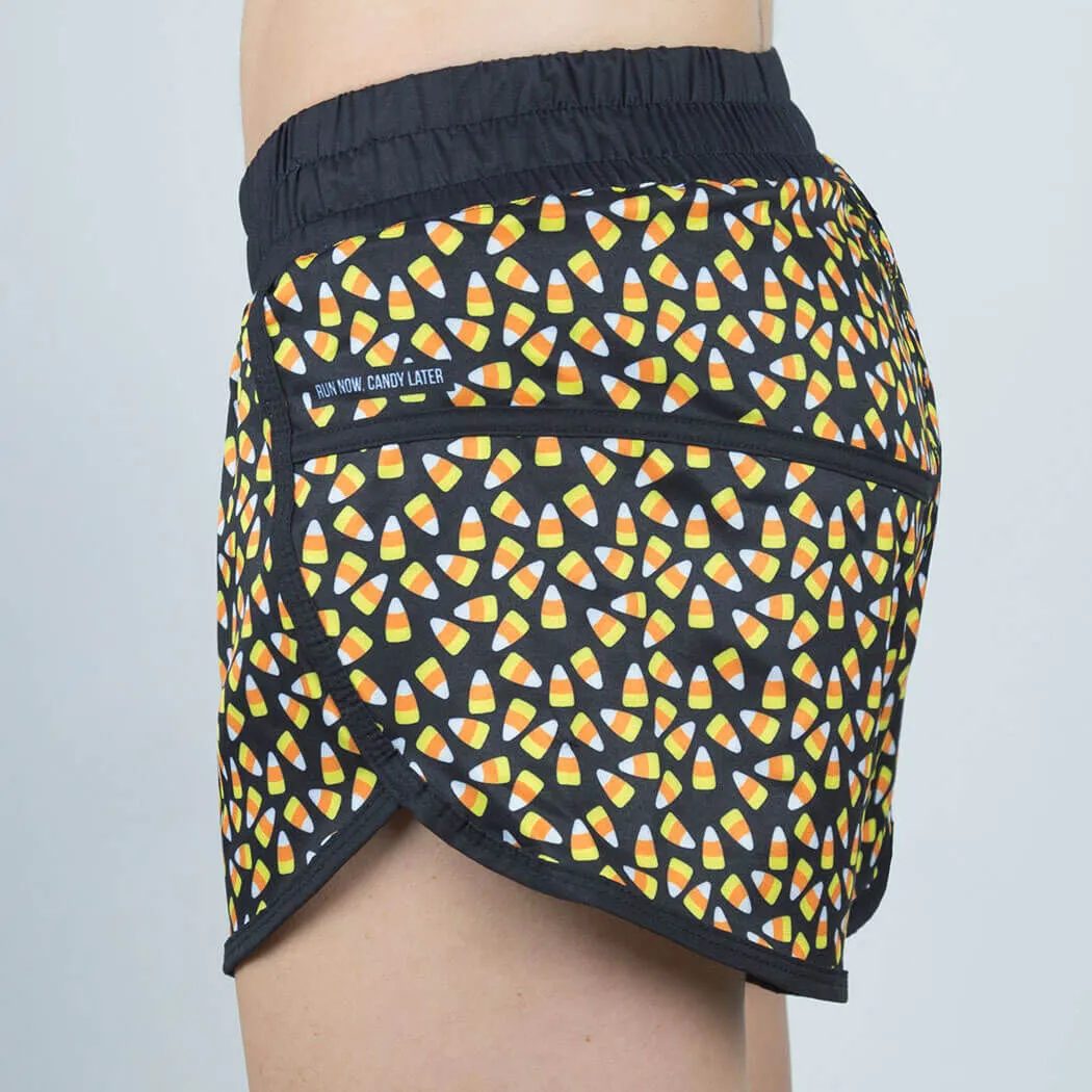 Our lightweight and moisture-wicking women’s Trick or Treat shorts are perfect for any run or activity. The RunTechnology® performance polyester dries quickly to keep runners and athletes stay dry and cool. With a high cut hem and lightweight mesh brief liner, the shorts ensure comfort and enhanced mobility. The elastic waistband lies flat and has a hidden continuous loop for adjustable fit. The shorts are also equipped with a zippered back pocket to hold your essentials such as your phone, card, or gels. Additionally, the shorts include a motivational message tucked along the left hem – sometimes humorous, but always inspiring. These stylish athletic shorts are sure to quickly become one of your favorites to wear during any and all activities.