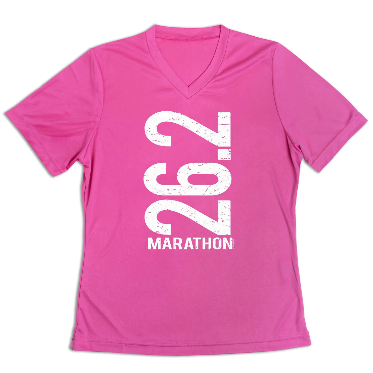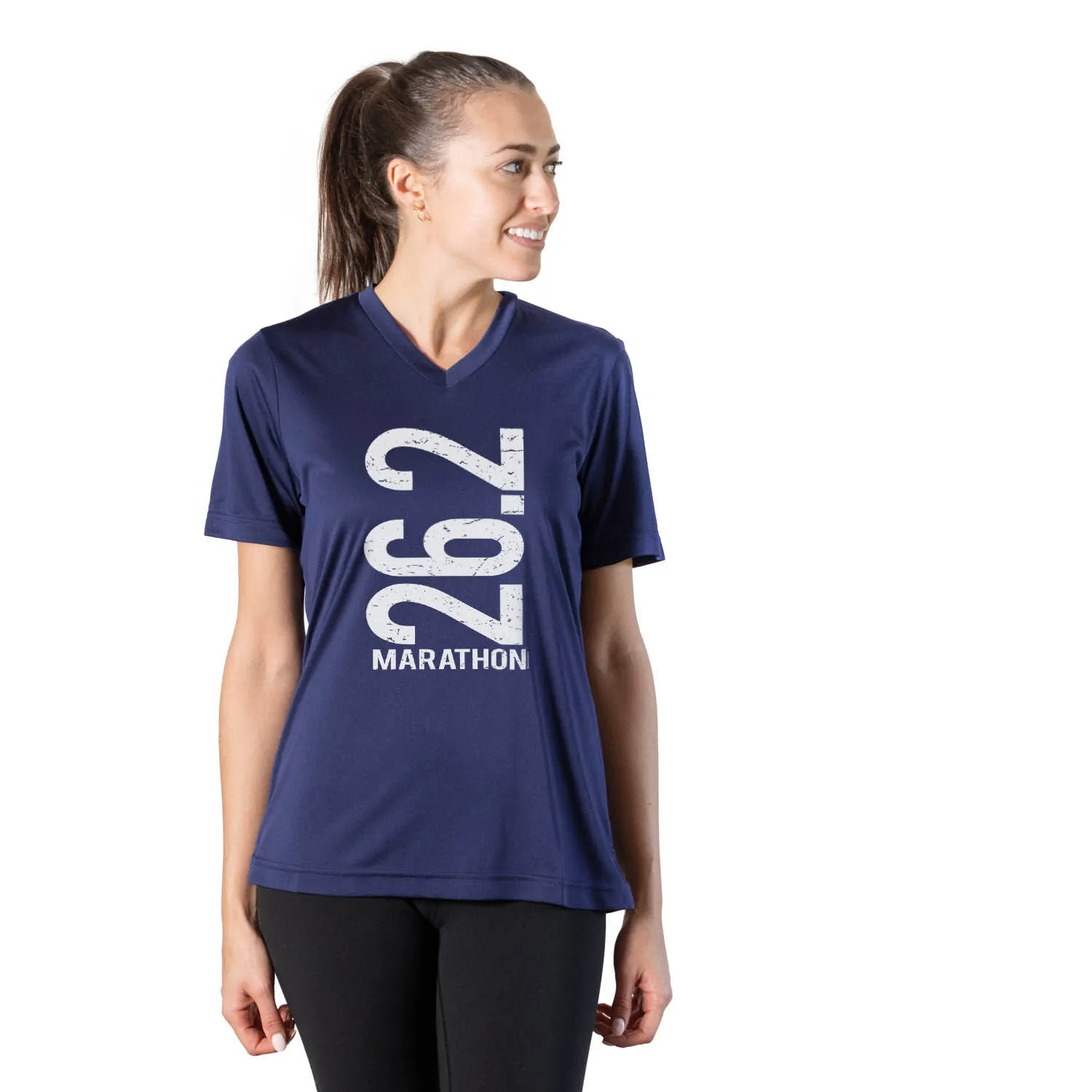 Women’s Short Sleeve Tech Tee – 26.2 Marathon Vertical
