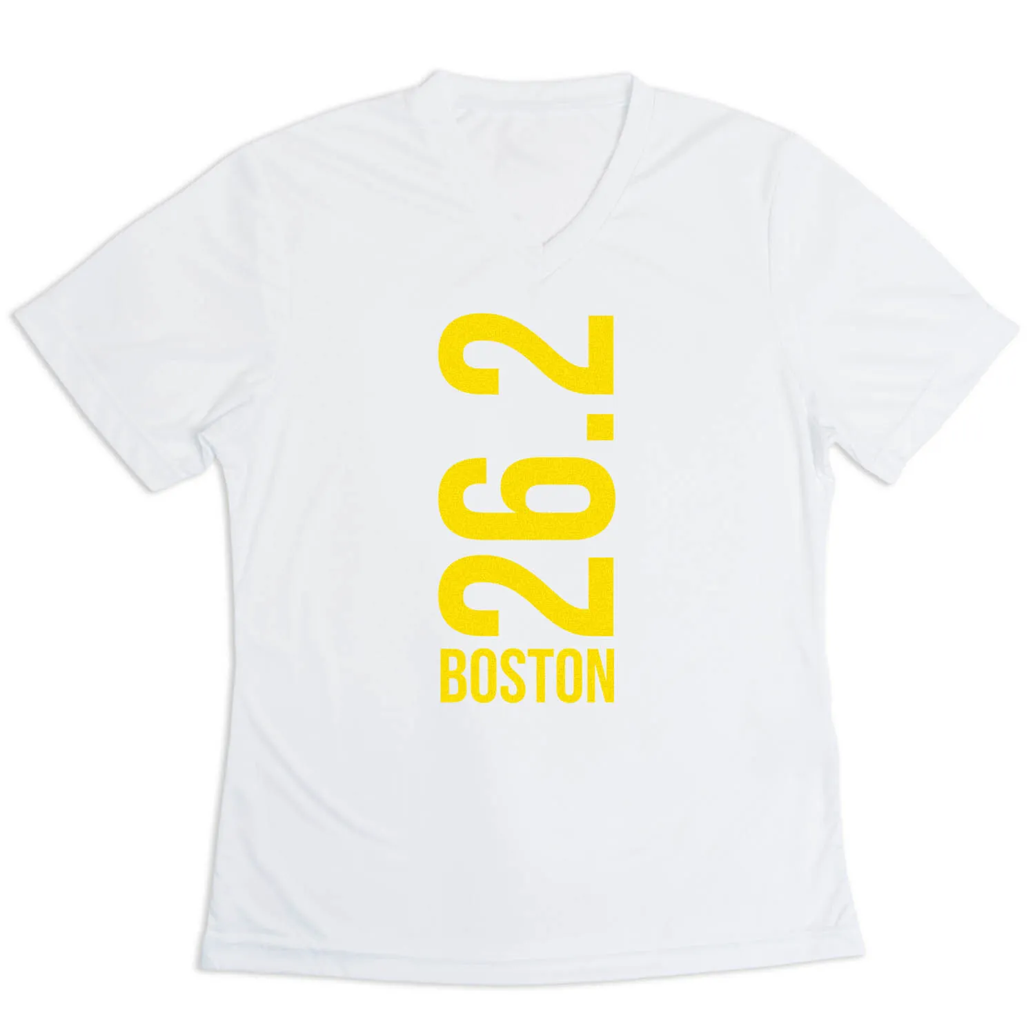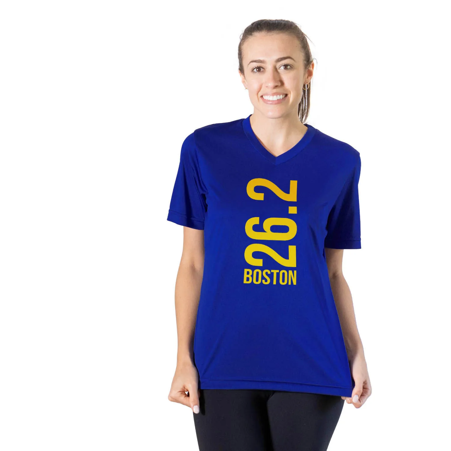 Show off your running pride in our women’s short sleeve tech tee featuring a one-of-a-kind bold design inspired by running. Our V-neck performance tee is made from 100% polyester interlock to keep runners dry and cool. The short sleeve tech tee offers a comfortable and relaxed fit that looks great with any choice of bottoms from leggings and athletic tights to jeans and shorts. This stylish tech tee is perfect for everyday wear and an ideal running gift for any occasion.