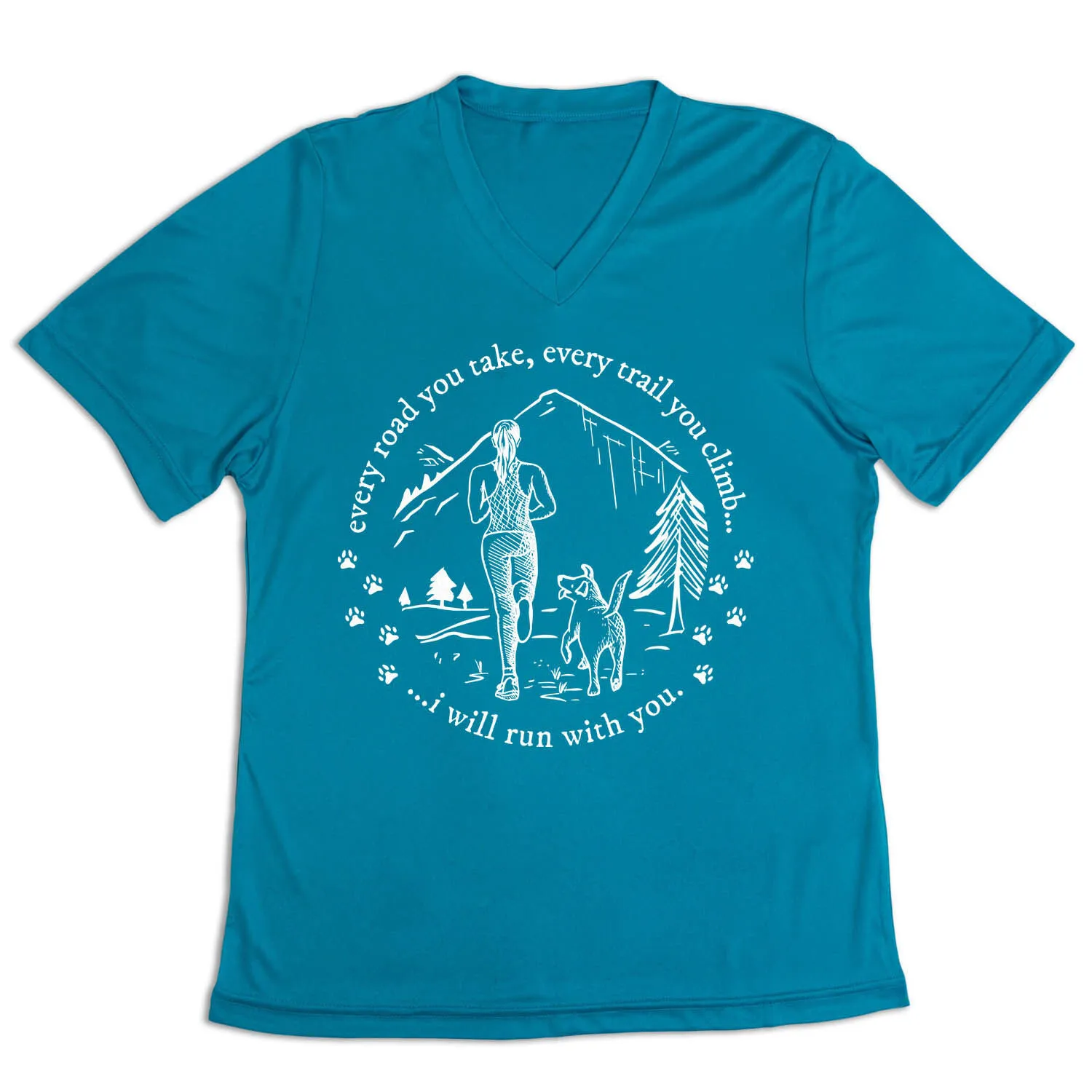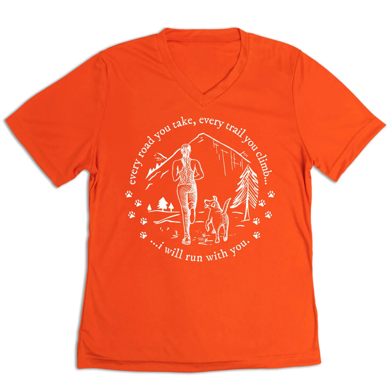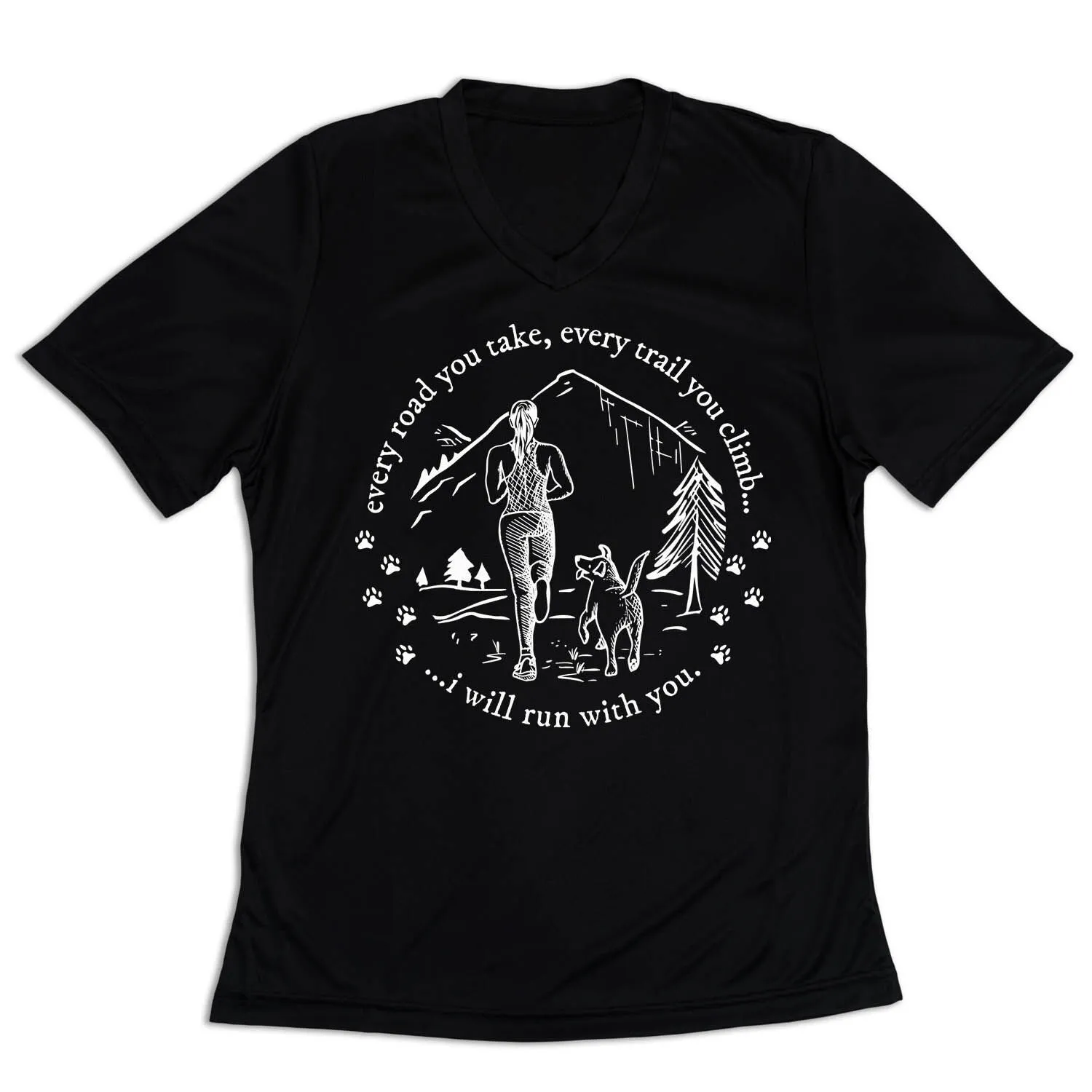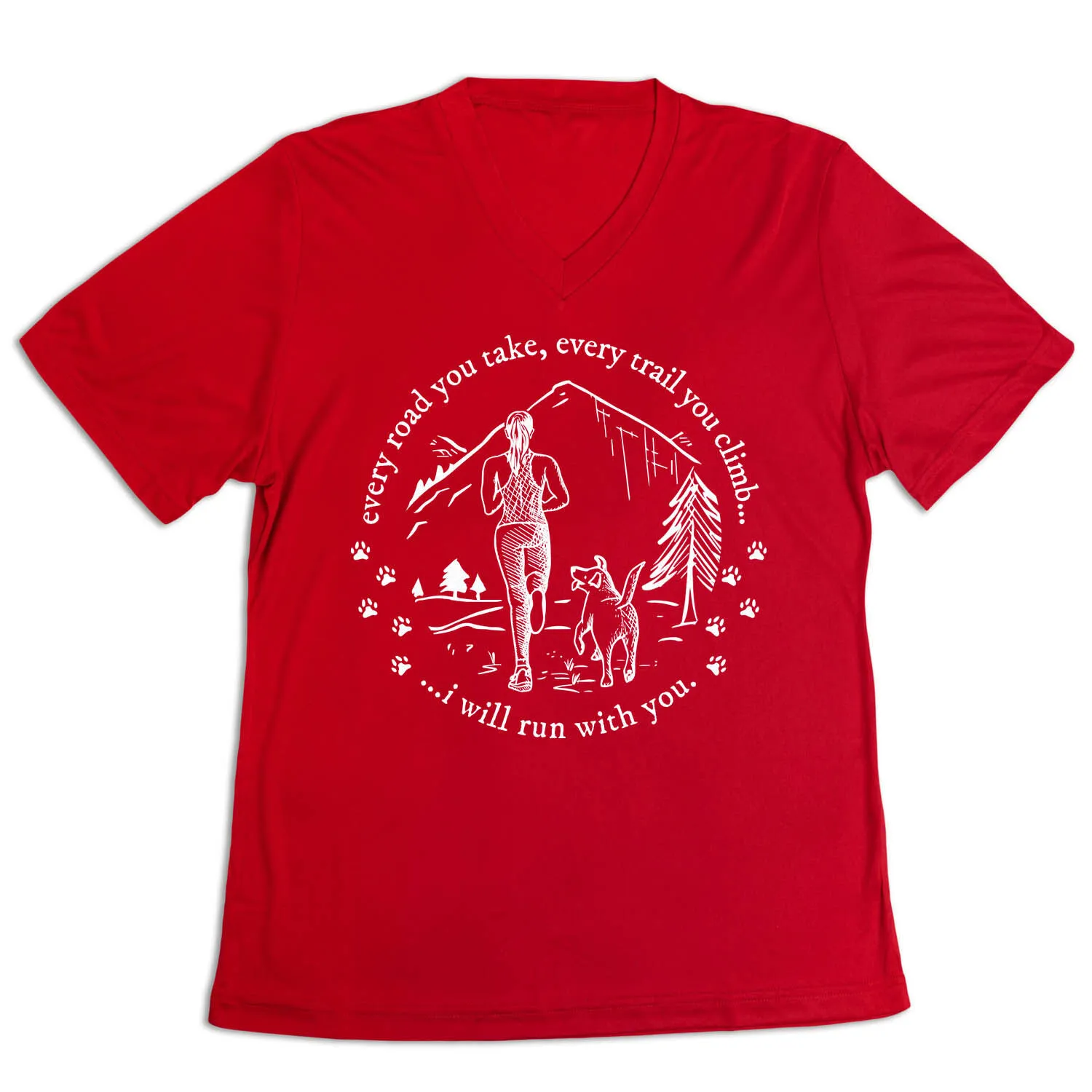 Show off your love for your fur best friend in our women’s short sleeve tech tee featuring a dog themed design inspired by running. Our V-neck performance tee is made from 100% polyester interlock to keep runners dry and cool. The short sleeve tech tee offers a comfortable and relaxed fit that looks great with any choice of bottoms from leggings and athletic tights to jeans and shorts. This stylish tech tee is perfect for everyday wear and an ideal running gift for any occasion.