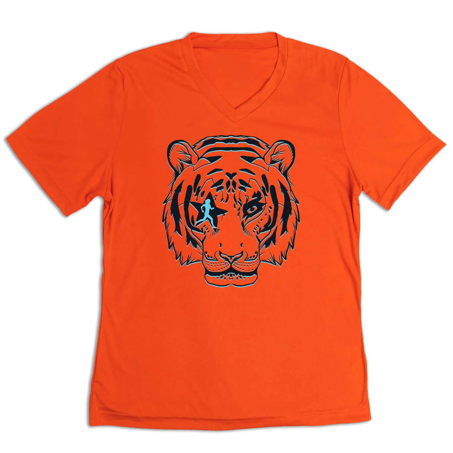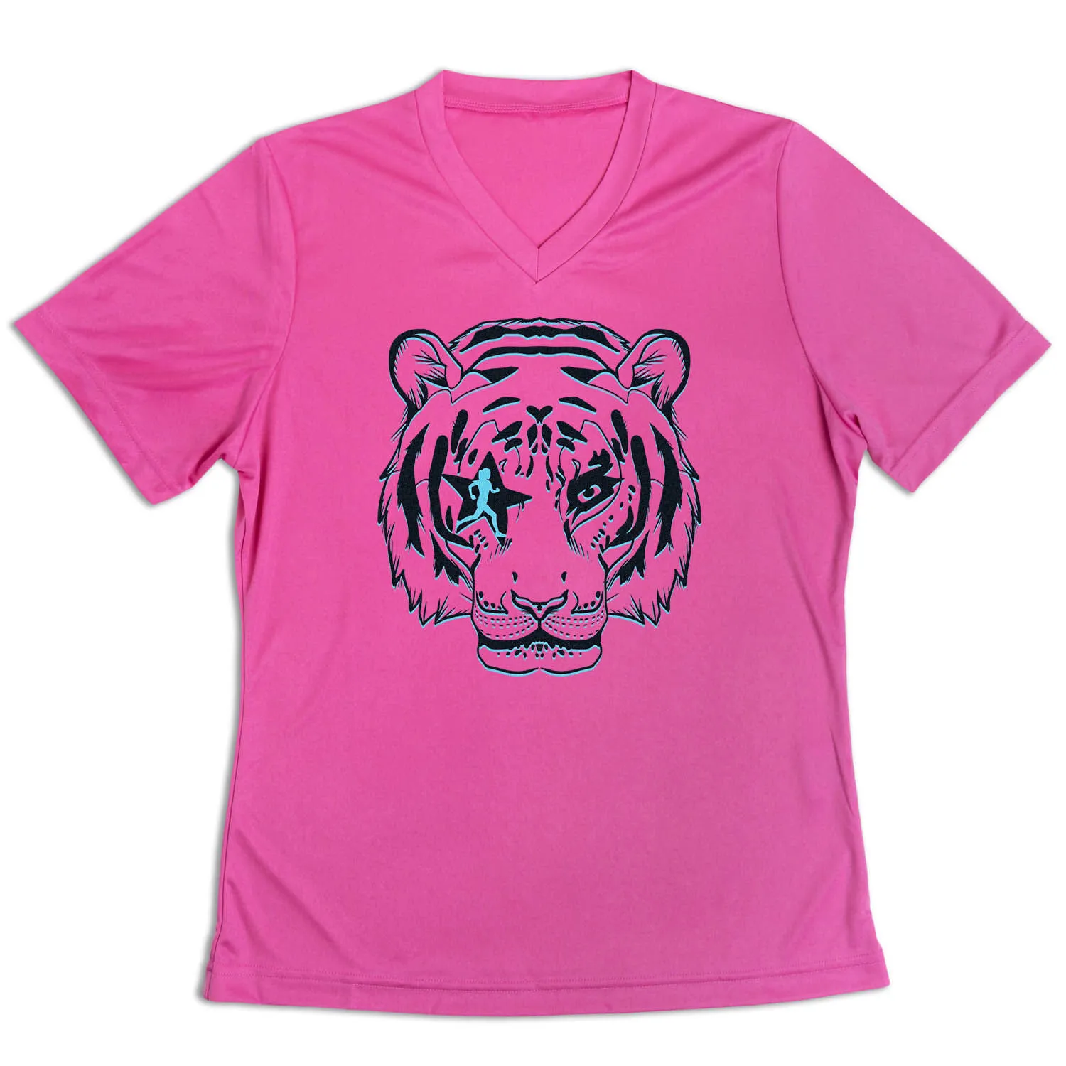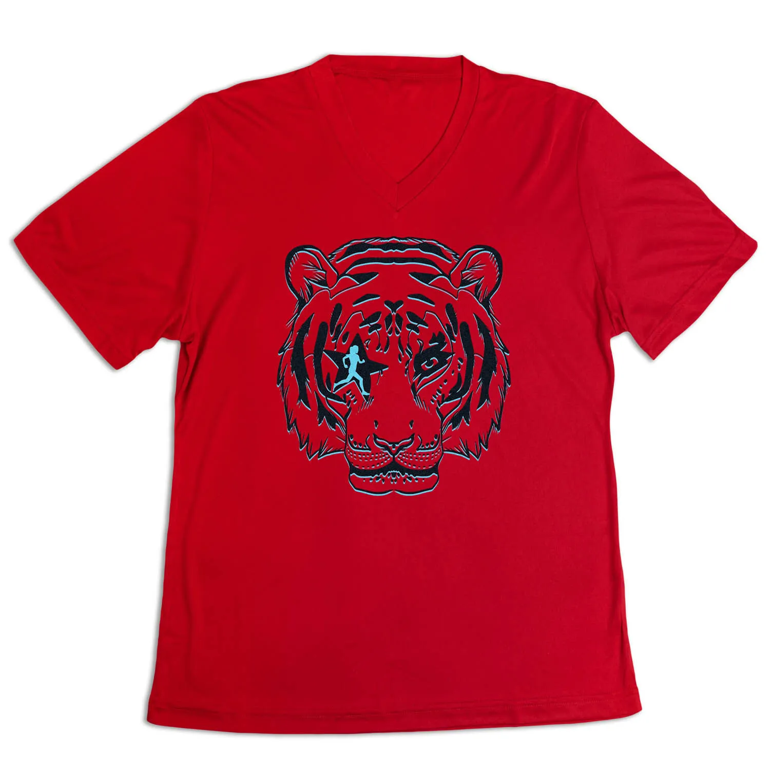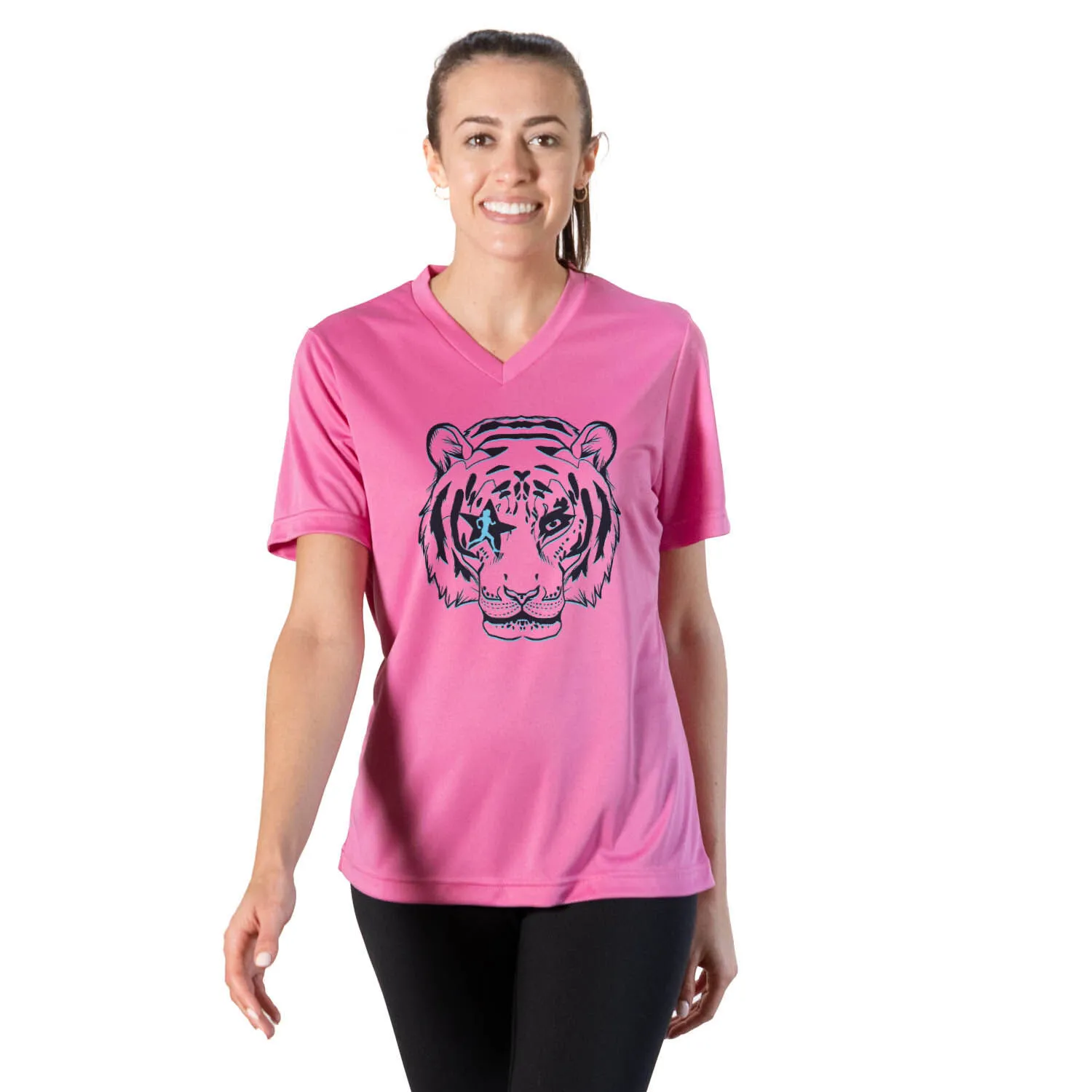 Show off your runner pride in our women’s short sleeve tech tee featuring our exclusive Eye Of The Tiger design. Our V-neck performance tee is made from 100% polyester interlock to keep runners dry and cool. The short sleeve tech tee offers a comfortable and relaxed fit that looks great with any choice of bottoms from leggings and athletic tights to jeans and shorts. This stylish tech tee is perfect for everyday wear and an ideal gift for any runner.