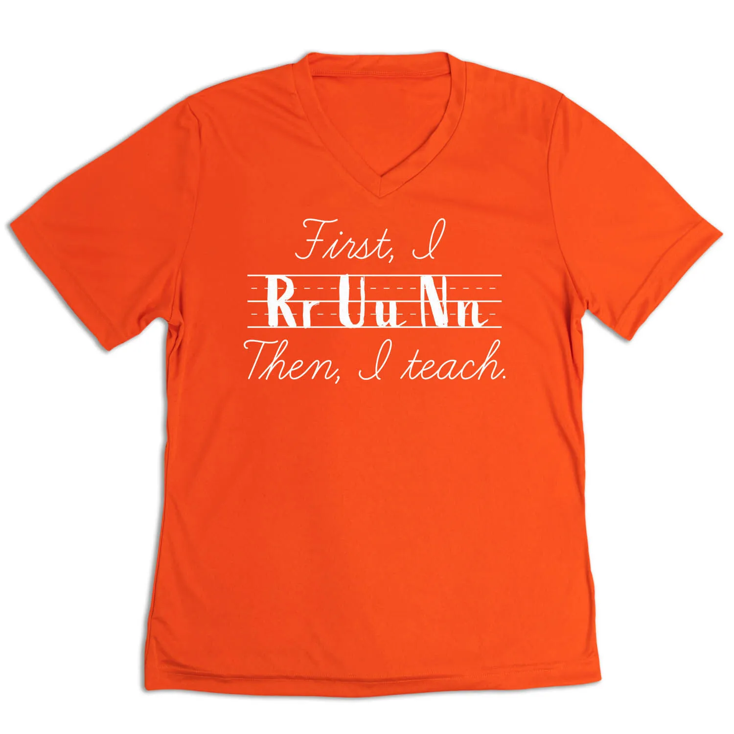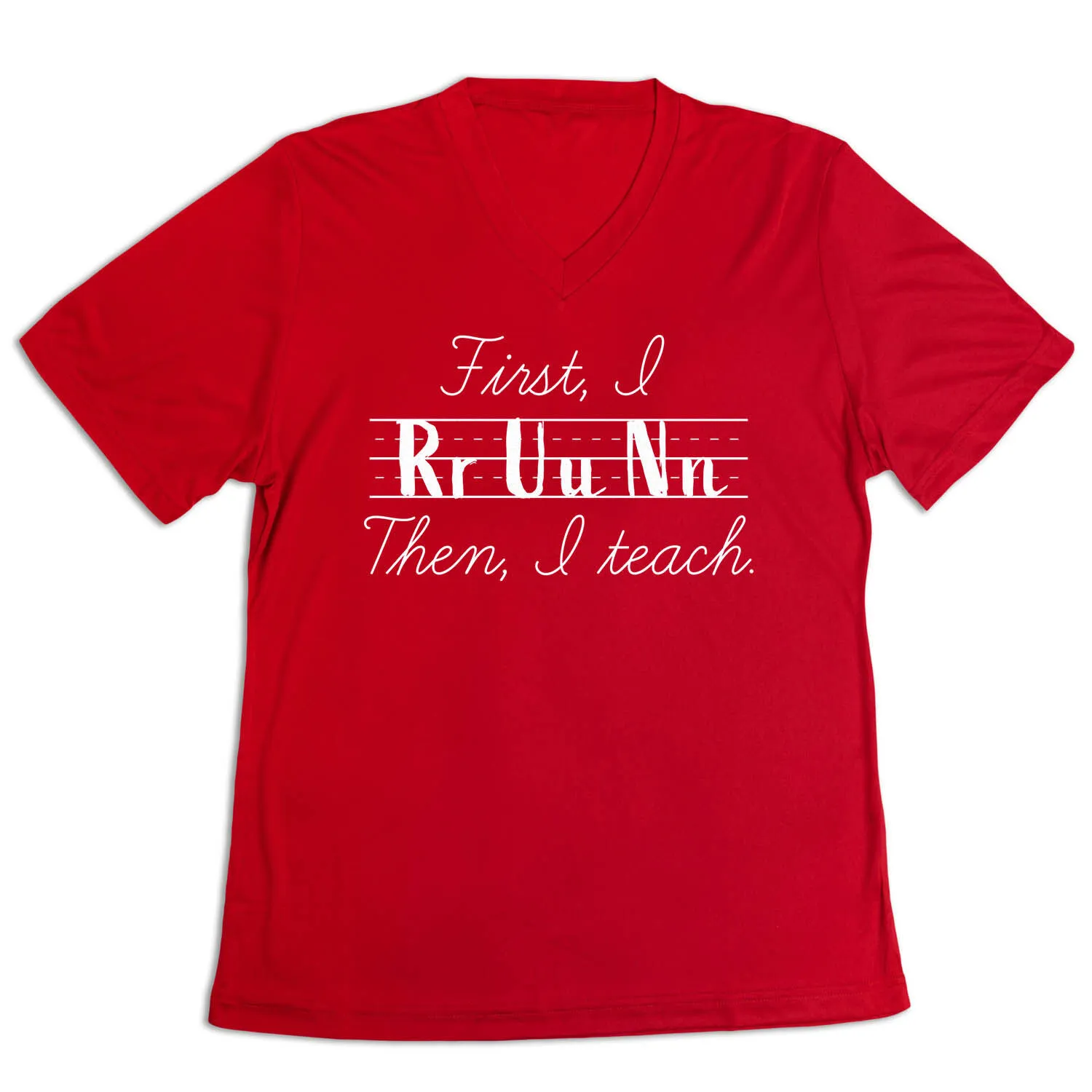 Show off your teacher pride in our women’s short sleeve tech tee. Our V-neck performance tee is made from 100% polyester interlock to keep runners dry and cool. The short sleeve tech tee offers a comfortable and relaxed fit that looks great with any choice of bottoms from leggings and athletic tights to jeans and shorts. This stylish tech tee is perfect for everyday wear and an ideal running gift for any occasion.