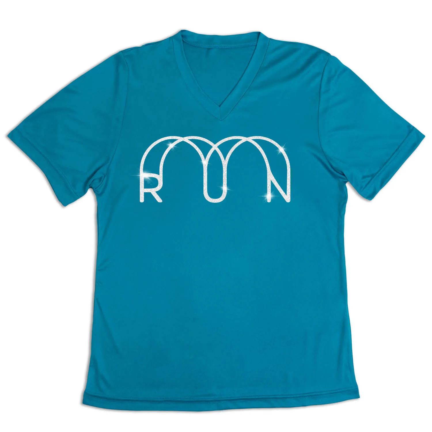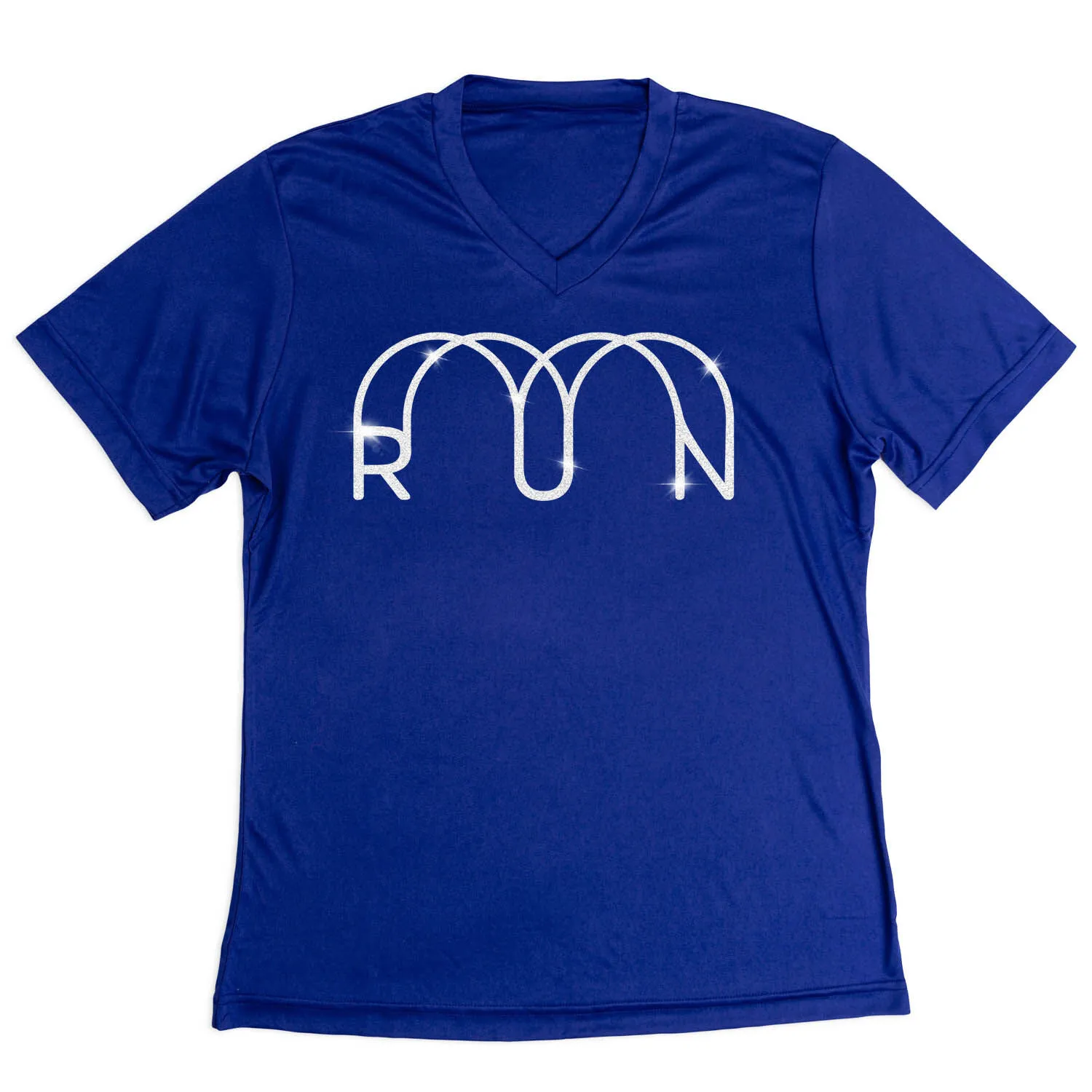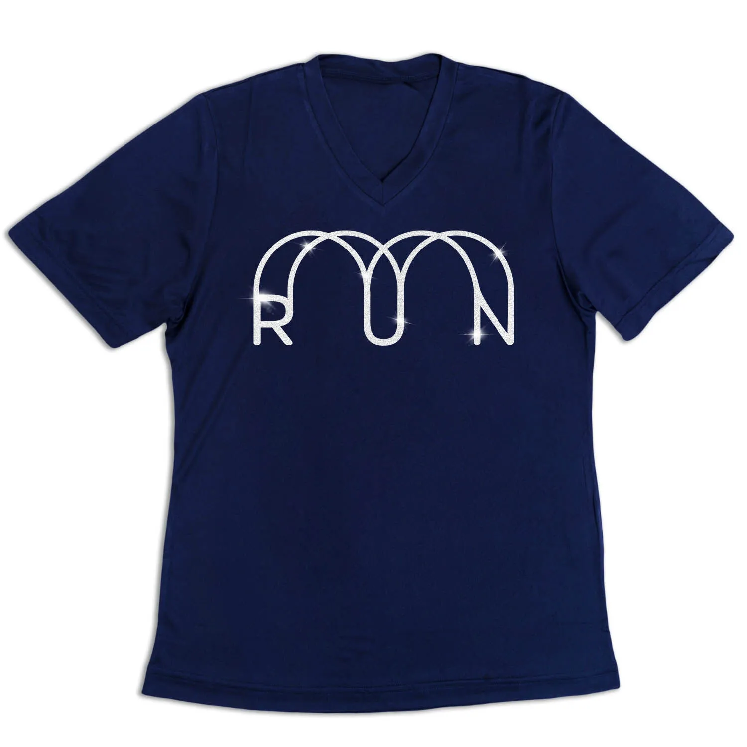 Shine and sparkle in our women’s short sleeve tech tee featuring our exclusive Glitter Run design. Our V-neck performance tee is made from 100% polyester interlock to keep runners dry and cool. The short sleeve tech tee offers a comfortable and relaxed fit that looks great with any choice of bottoms from leggings and athletic tights to jeans and shorts. This stylish tech tee is perfect for everyday wear and an ideal running gift for any runner girl.