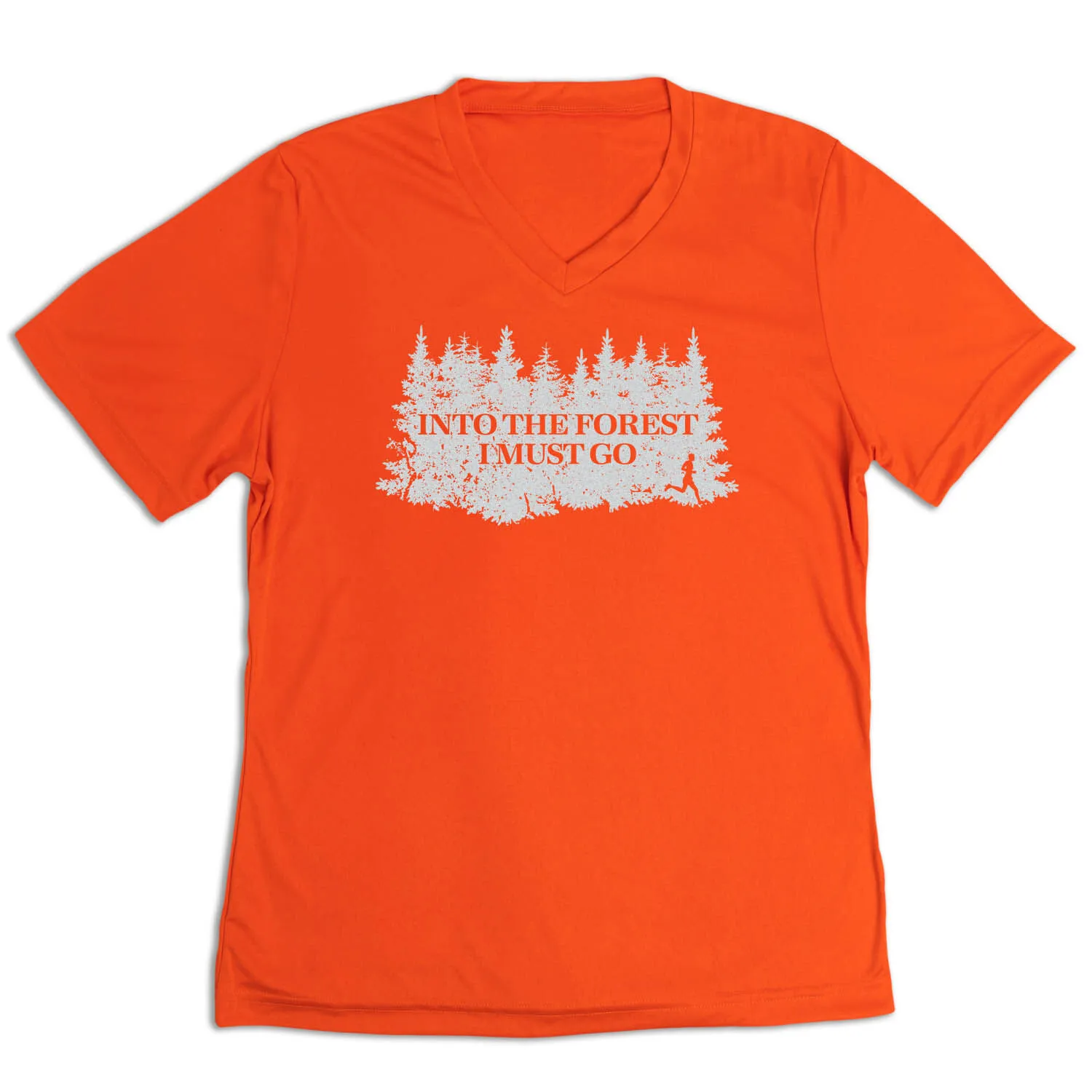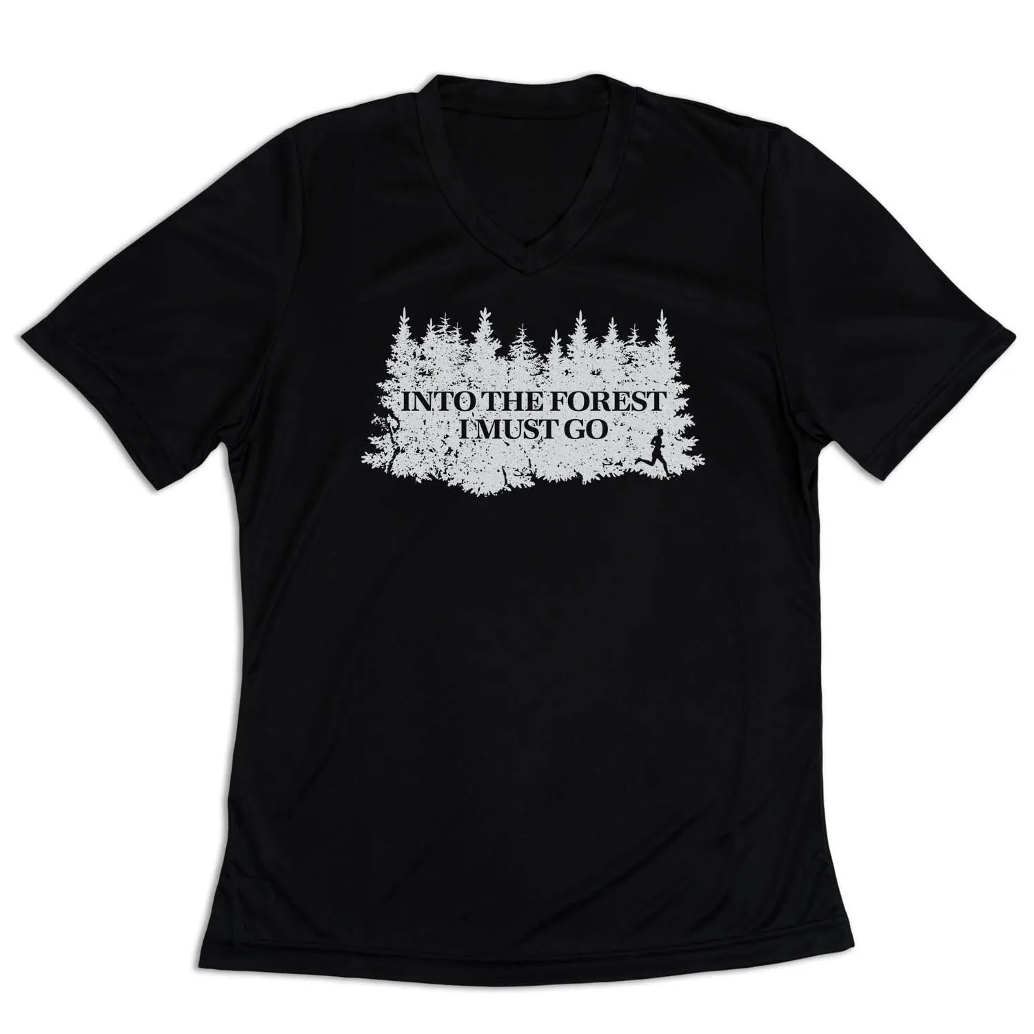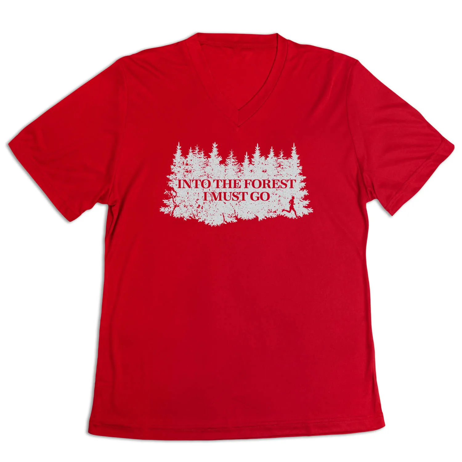 Show off your runner pride in our women’s short sleeve tech tee featuring our exclusive Into the Forest I Must Go Running design. Our V-neck performance tee is made from 100% polyester interlock to keep runners dry and cool. The short sleeve tech tee offers a comfortable and relaxed fit that looks great with any choice of bottoms from leggings and athletic tights to jeans and shorts. This stylish tech tee is perfect for everyday wear and an ideal running gift for any occasion.