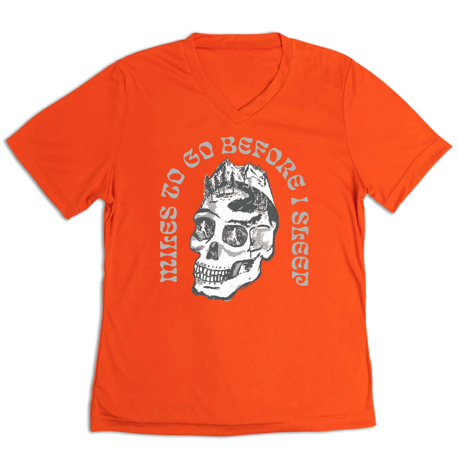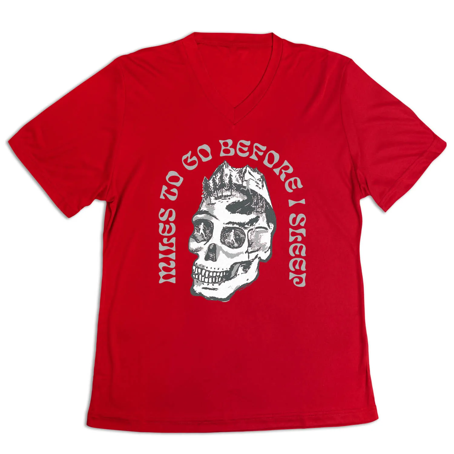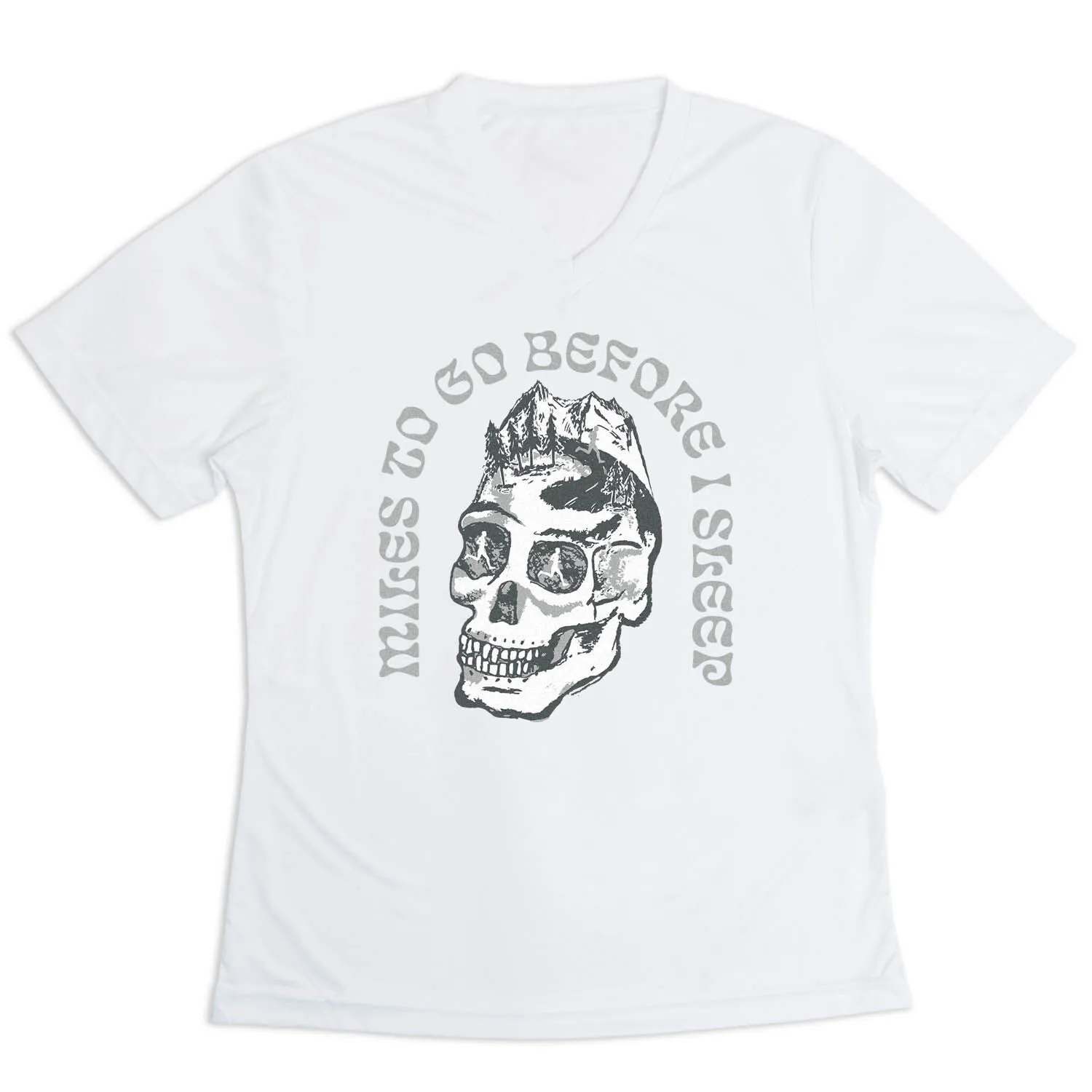 Show off your runner pride in our women’s short sleeve tech tee featuring our exclusive Miles To Go Before I Sleep Skull design. Our V-neck performance tee is made from 100% polyester interlock to keep runners dry and cool. The short sleeve tech tee offers a comfortable and relaxed fit that looks great with any choice of bottoms from leggings and athletic tights to jeans and shorts. This stylish tech tee is perfect for everyday wear and an ideal running gift for any occasion.