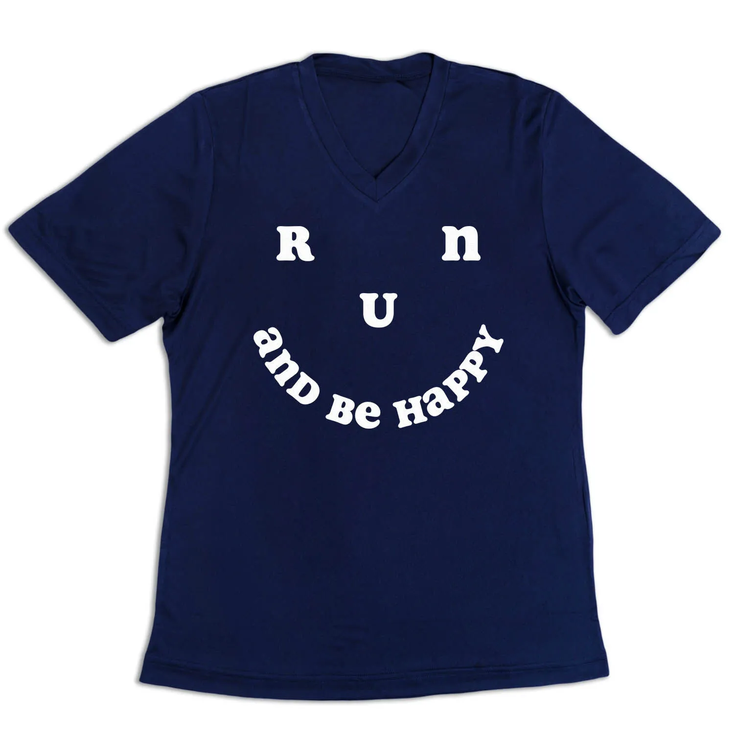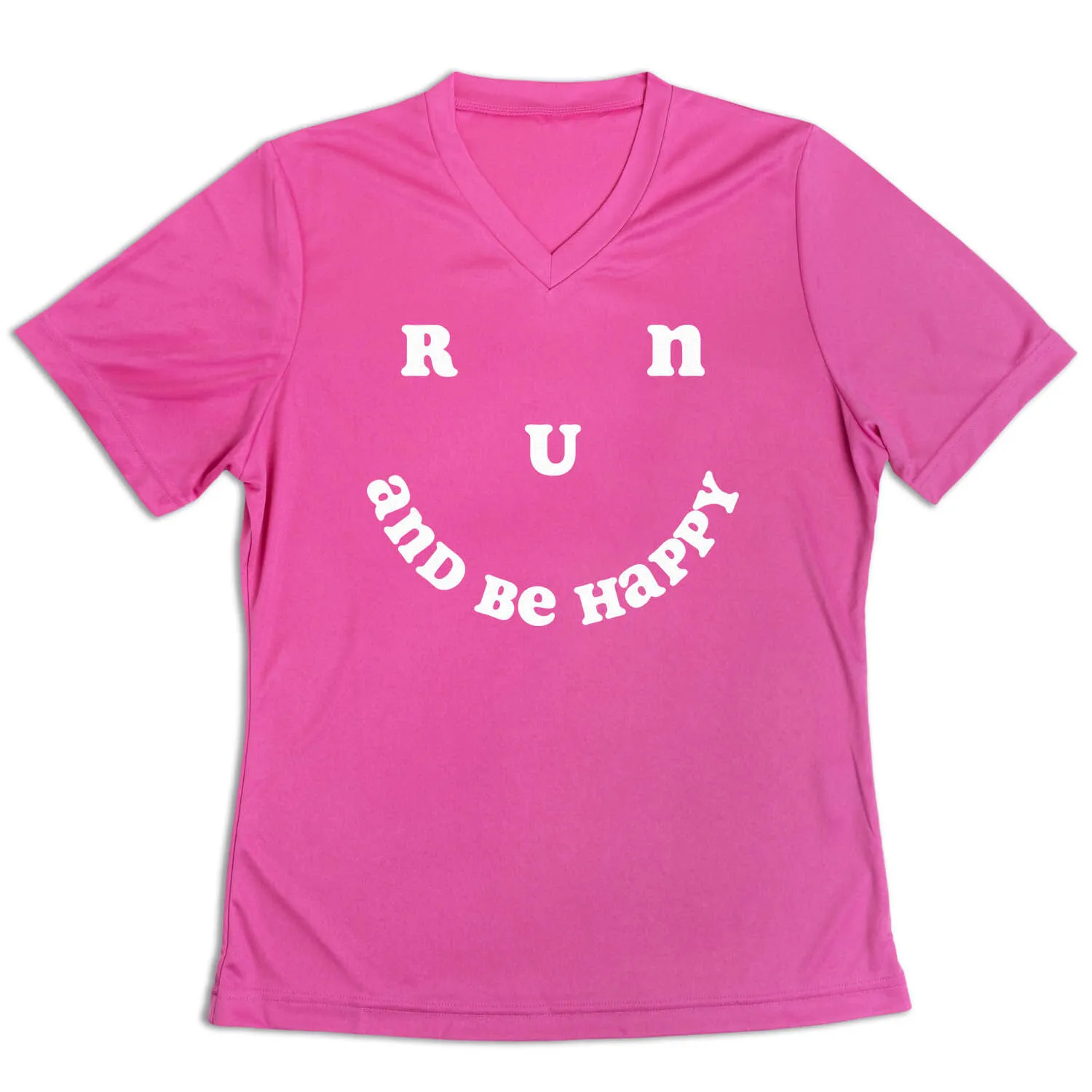 Run and be happy in our women’s short sleeve tech tee. Our V-neck performance tee is made from 100% polyester interlock to keep runners dry and cool. The short sleeve tech tee offers a comfortable and relaxed fit that looks great with any choice of bottoms from leggings and athletic tights to jeans and shorts. This stylish tech tee is perfect for everyday wear and an ideal running gift for any occasion.