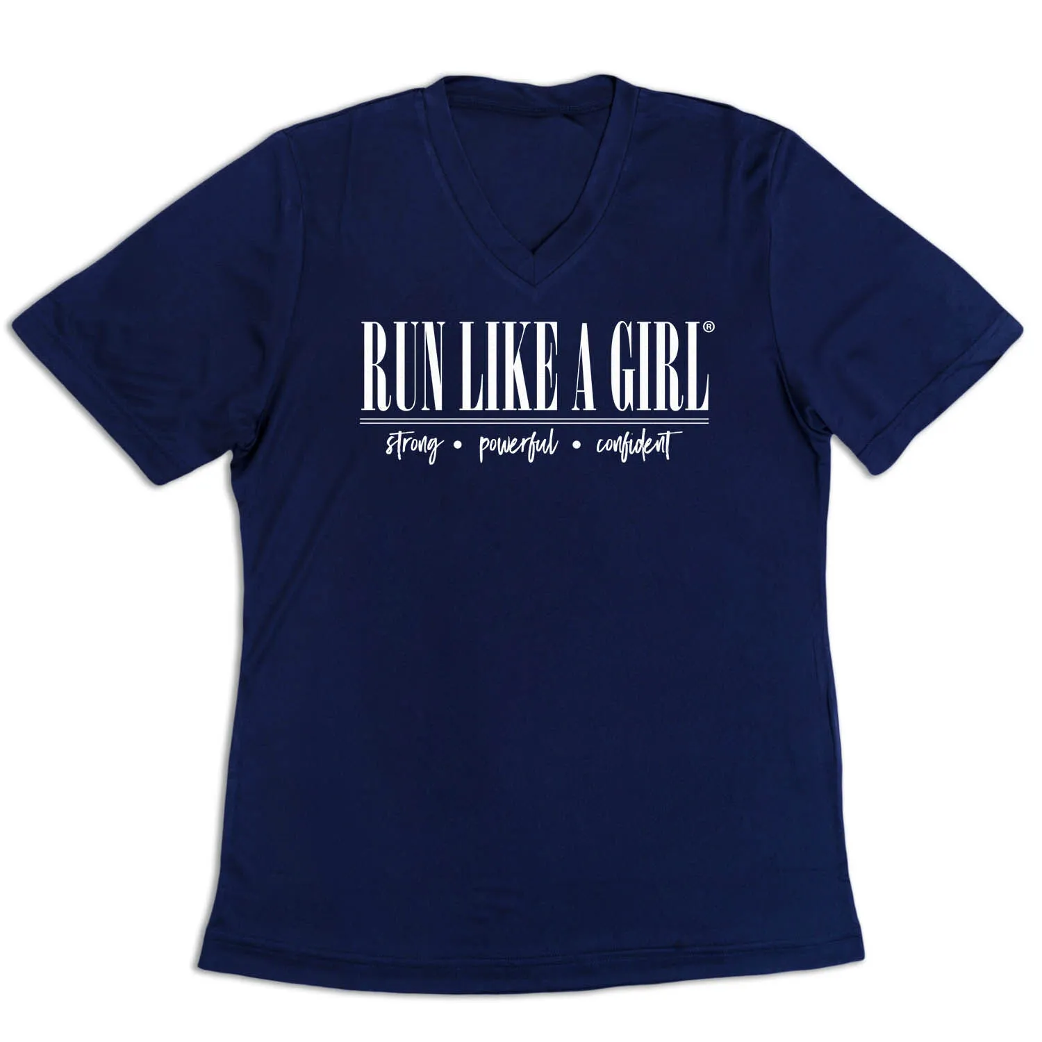 Be strong, powerful, and confident in our women’s short sleeve tech tee featuring our exclusive Run Like A Girl® design. Our V-neck performance tee is made from 100% polyester interlock to keep runners dry and cool. The short sleeve tech tee offers a comfortable and relaxed fit that looks great with any choice of bottoms from leggings and athletic tights to jeans and shorts. This stylish tech tee is perfect for everyday wear and an ideal running gift for any runner girl.