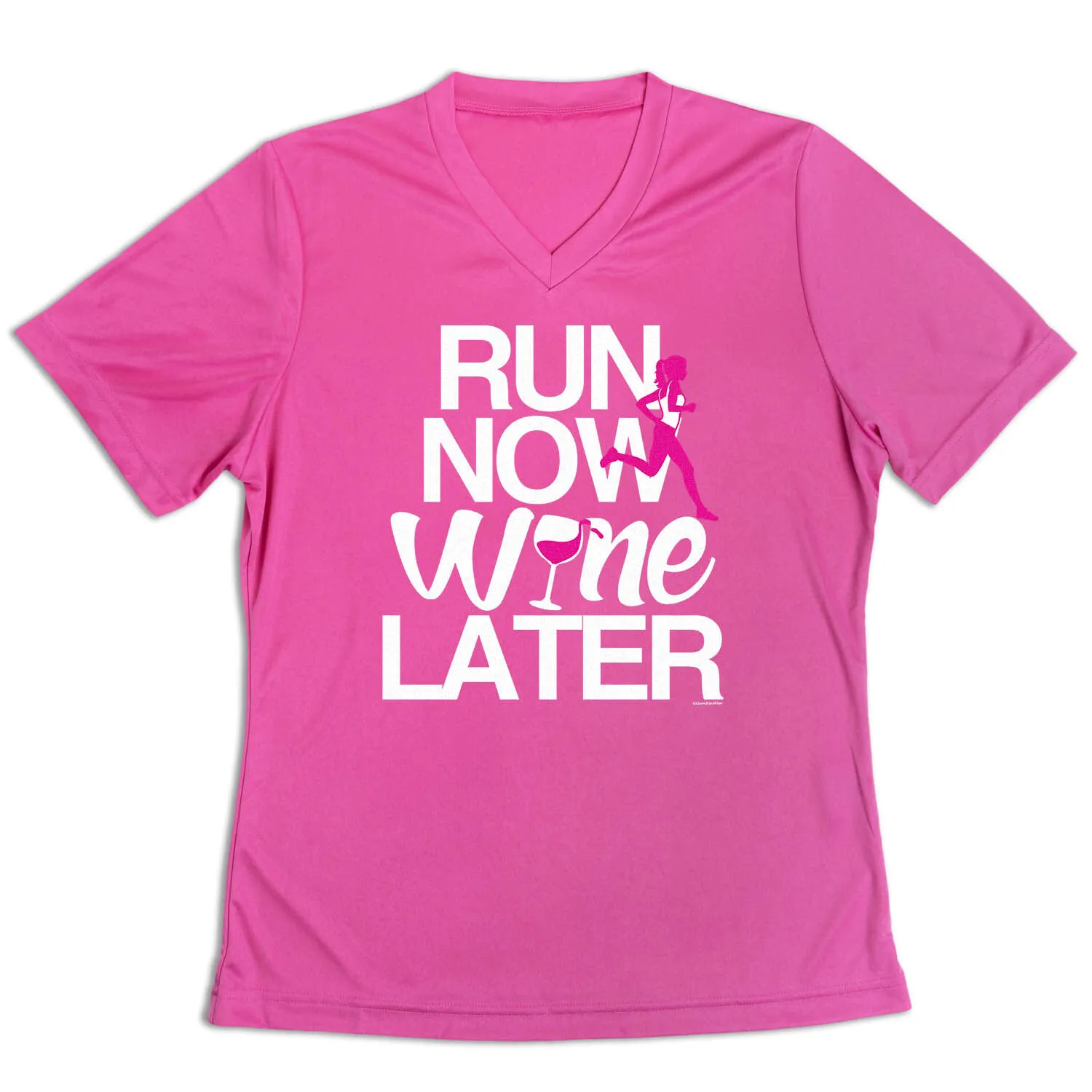 Women’s Short Sleeve Tech Tee – Run Now Wine Later (Bold)