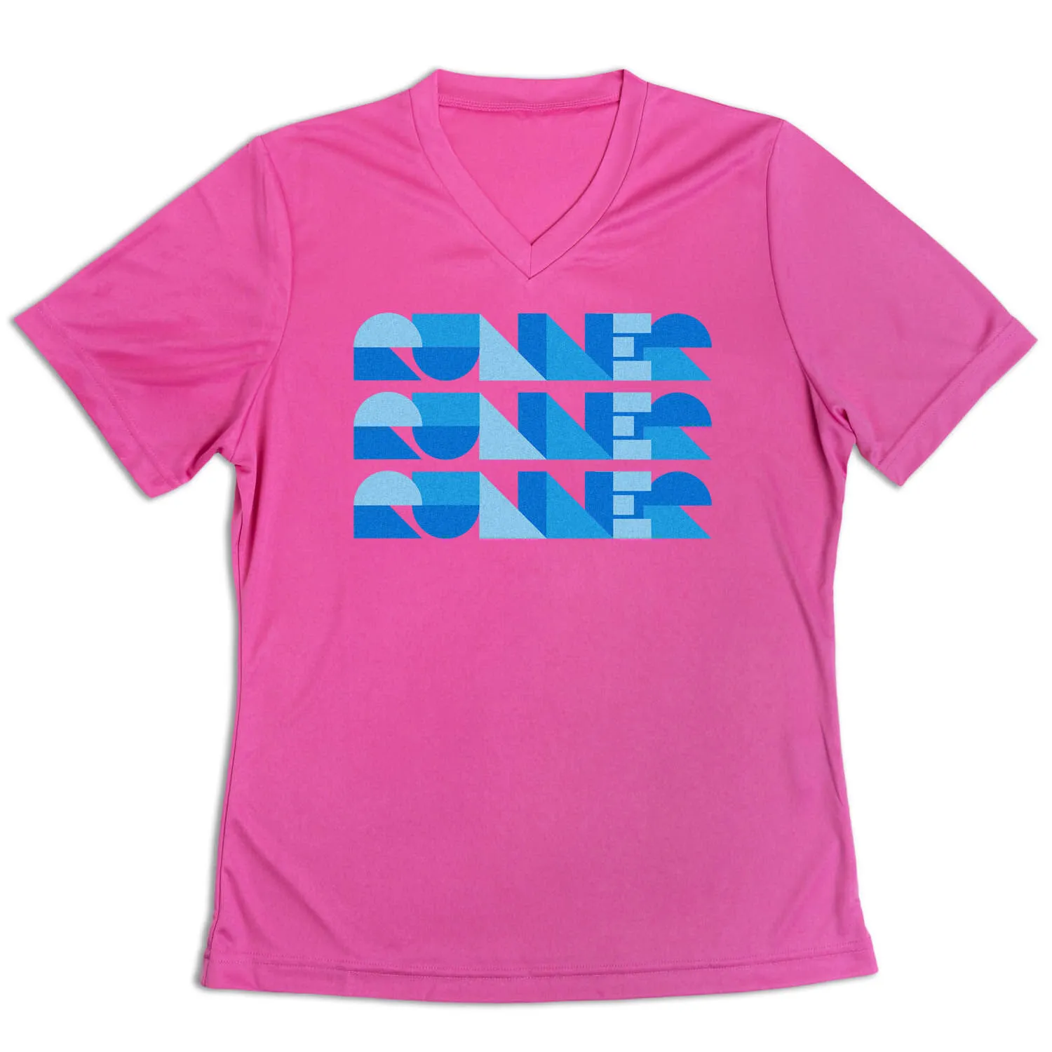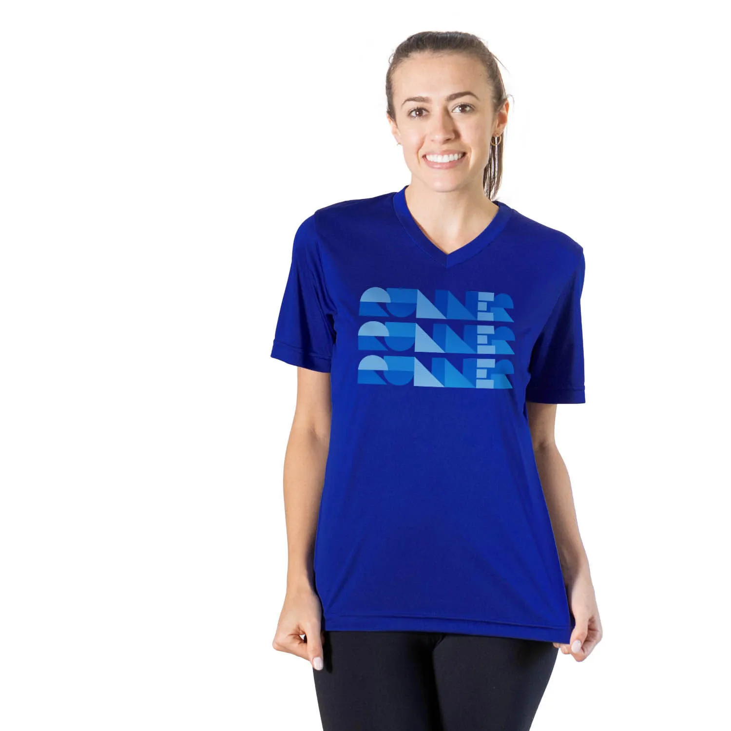 Show off your runner pride in our women’s short sleeve tech tee featuring our exclusive Run Repeat design. Our V-neck performance tee is made from 100% polyester interlock to keep runners dry and cool. The short sleeve tech tee offers a comfortable and relaxed fit that looks great with any choice of bottoms from leggings and athletic tights to jeans and shorts. This stylish tech tee is perfect for everyday wear and an ideal running gift for any occasion.