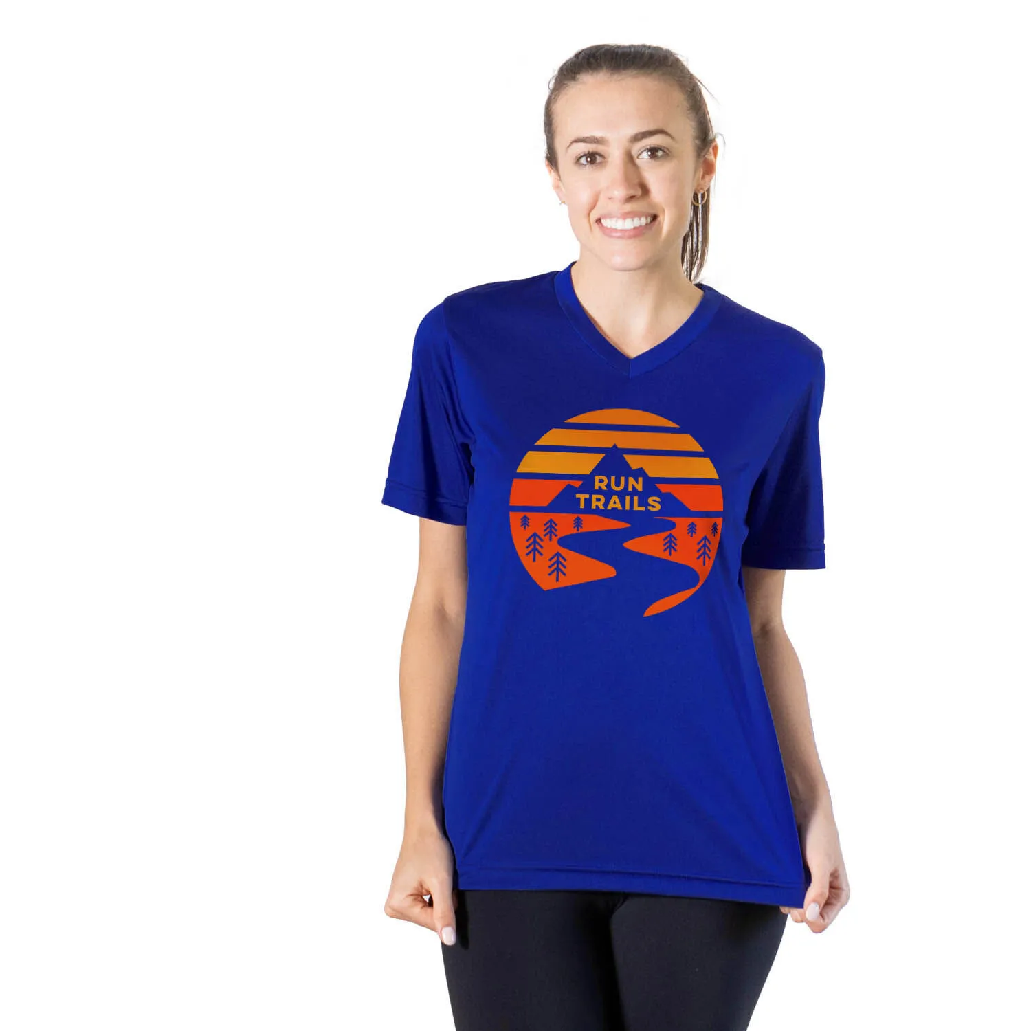 Women’s Short Sleeve Tech Tee – Run Trails Sunset