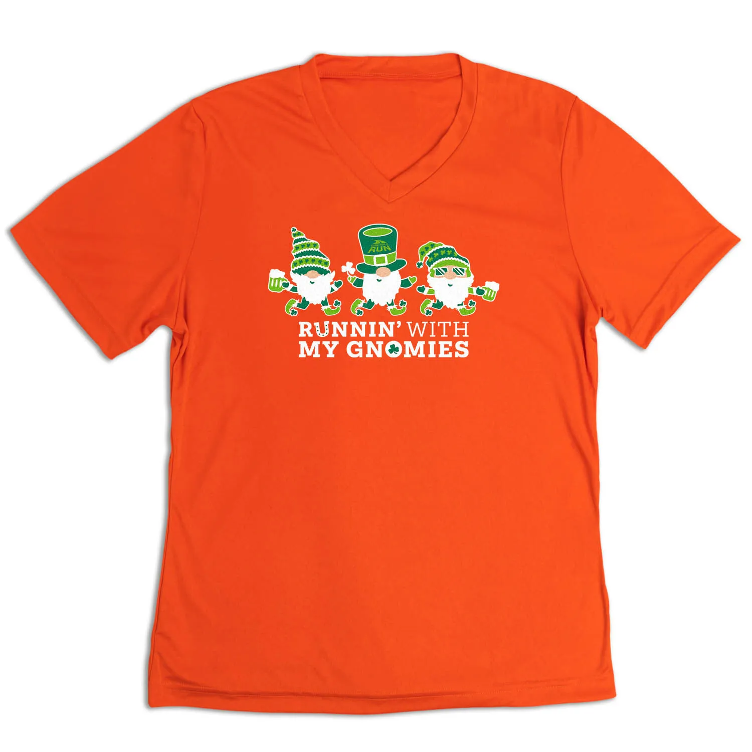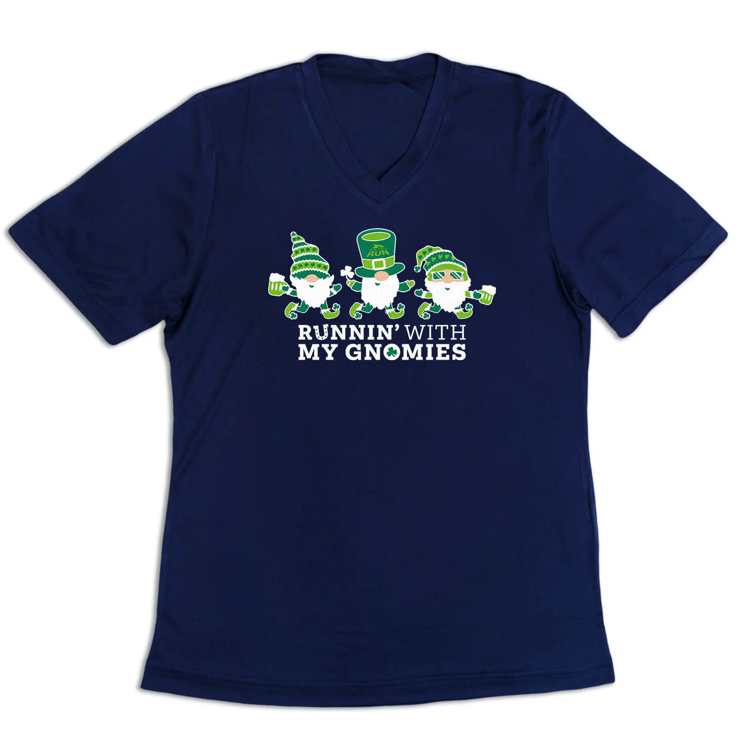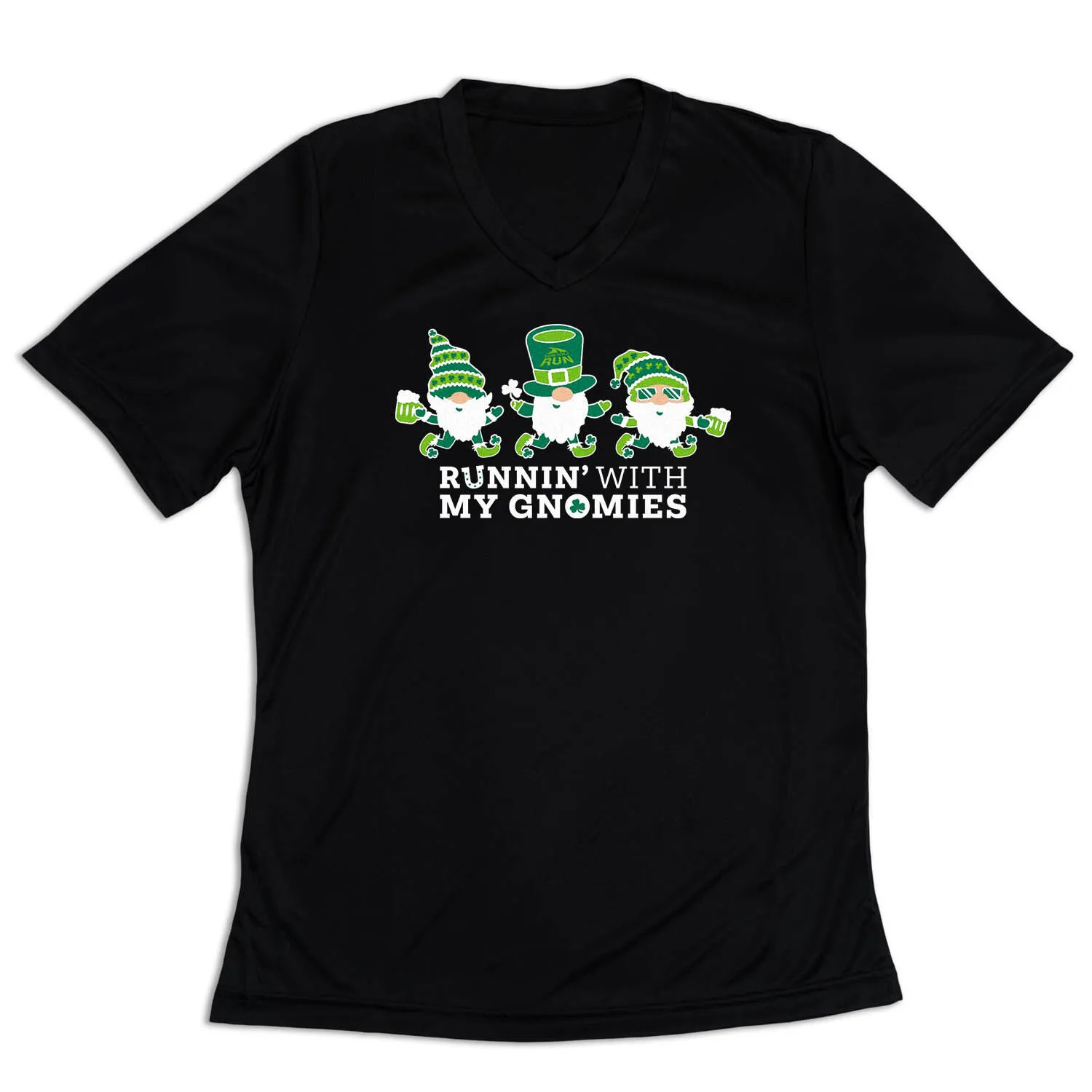 Celebrate St. Patrick’s Day and get festive with your favorite running buddies (aka…gnomies) in our women’s short sleeve tech tee. Our V-neck performance tee is made from 100% polyester interlock to keep runners dry and cool. The short sleeve tech tee offers a comfortable and relaxed fit that looks great with any choice of bottoms from leggings and athletic tights to jeans and shorts. This stylish tech tee is perfect for everyday wear and an ideal running gift for any occasion. Good luck to you & your runner friends – let’s get those miles in!