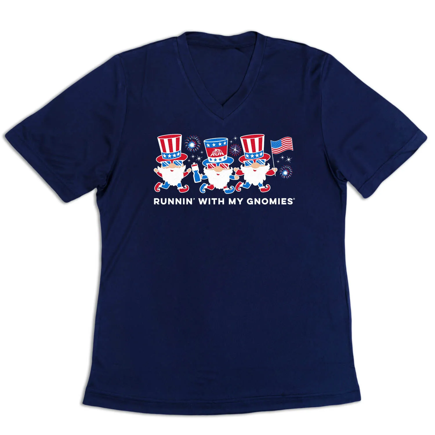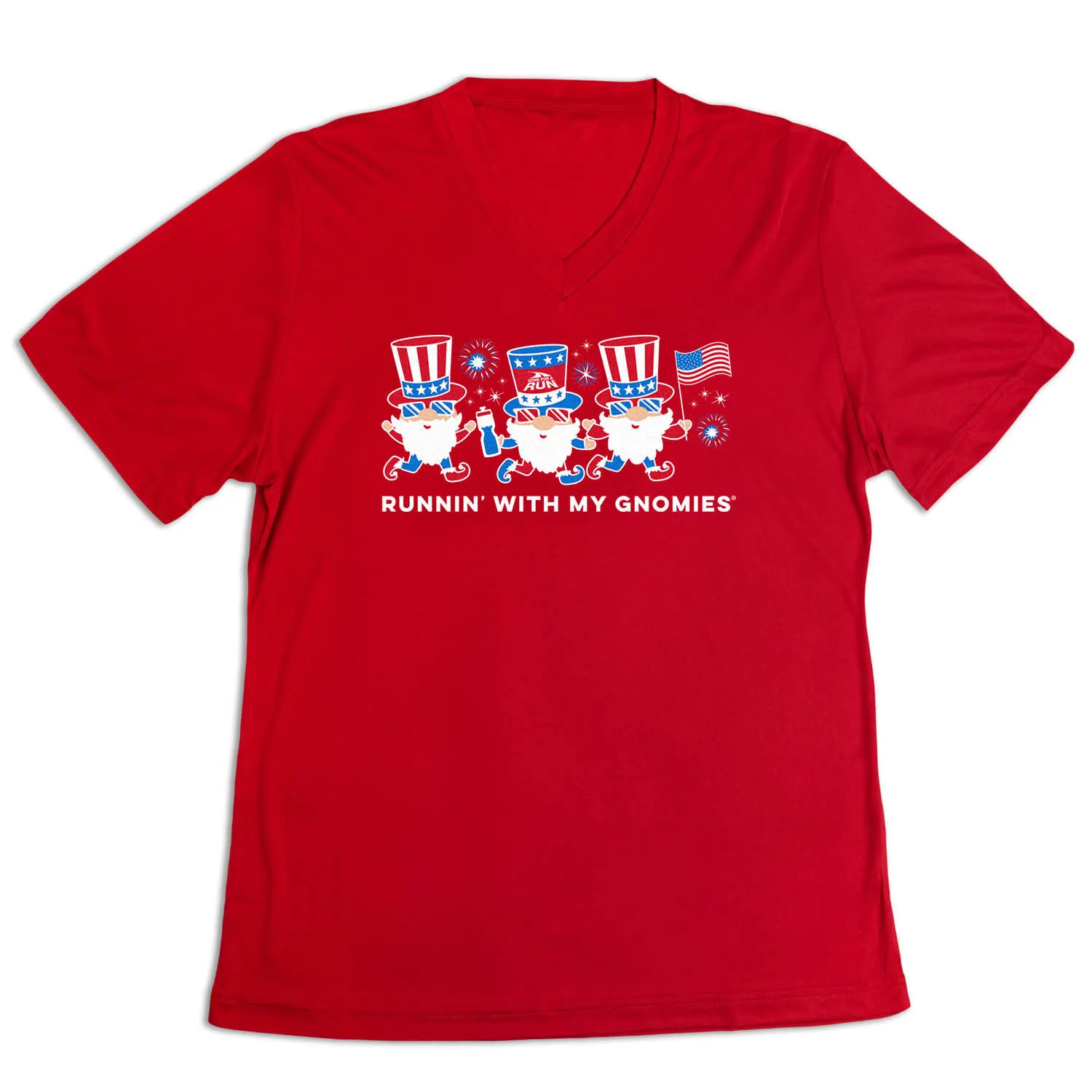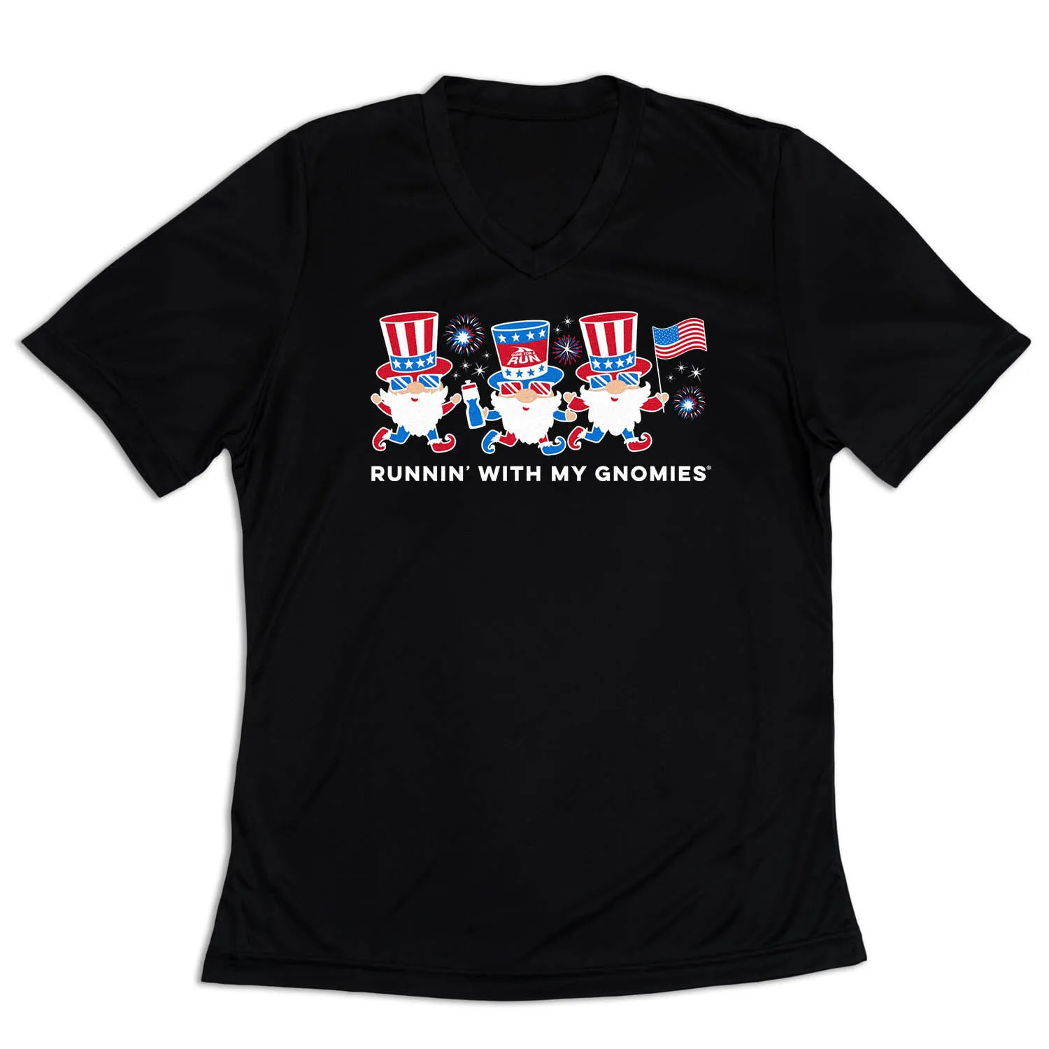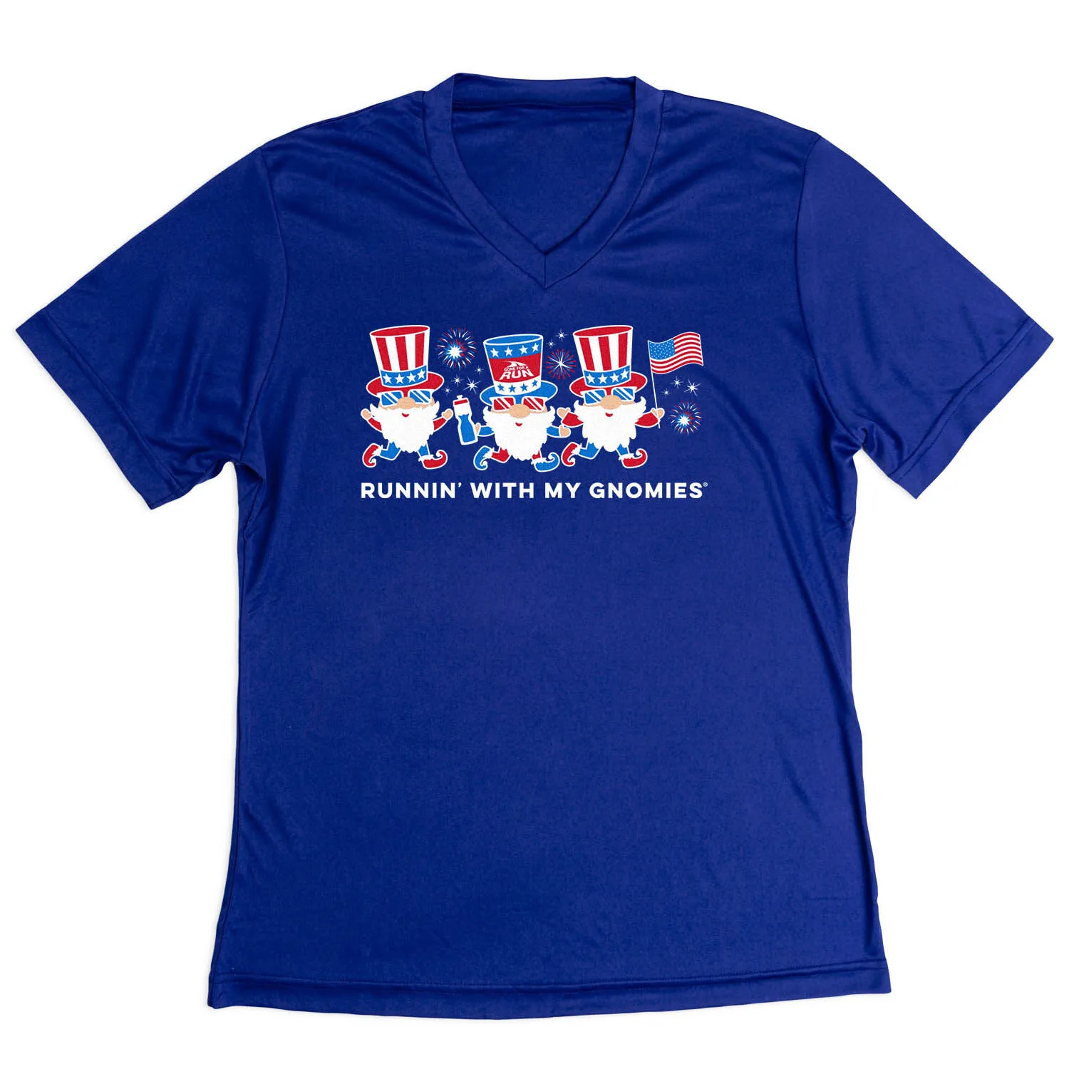 Featuring an exclusive patriotic running design, the Runnin’ With My Patriotic Gnomies women’s short sleeve tech tee is a must-have for runners. Made of 100% polyester interlock, this V-neck performance tee keeps runners dry and cool. With a relaxed fit, the short sleeve tech tee looks great with any choice of bottoms, from leggings and athletic tights to jeans and shorts. This stylish tech tee is suitable any patriotic races (especially during Memorial Day and 4th of July), everyday wear, and makes a perfect running gift for any occasion.