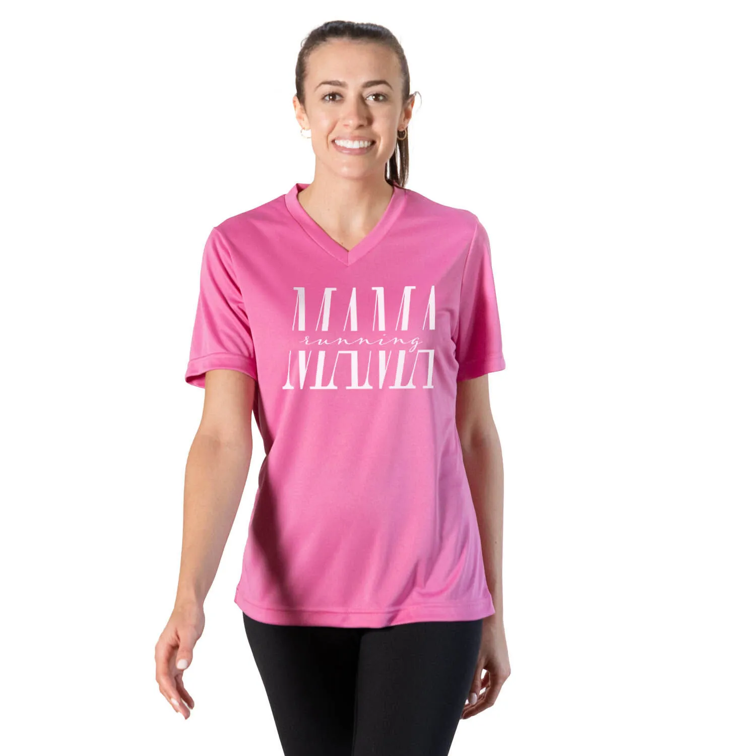 Show off your mom pride in our women’s short sleeve tech tee featuring our exclusive Running Mama design. Our V-neck performance tee is made from 100% polyester interlock to keep runners dry and cool. The short sleeve tech tee offers a comfortable and relaxed fit that looks great with any choice of bottoms from leggings and athletic tights to jeans and shorts. This stylish tech tee is perfect for everyday wear and an ideal running gift for any runner mom.