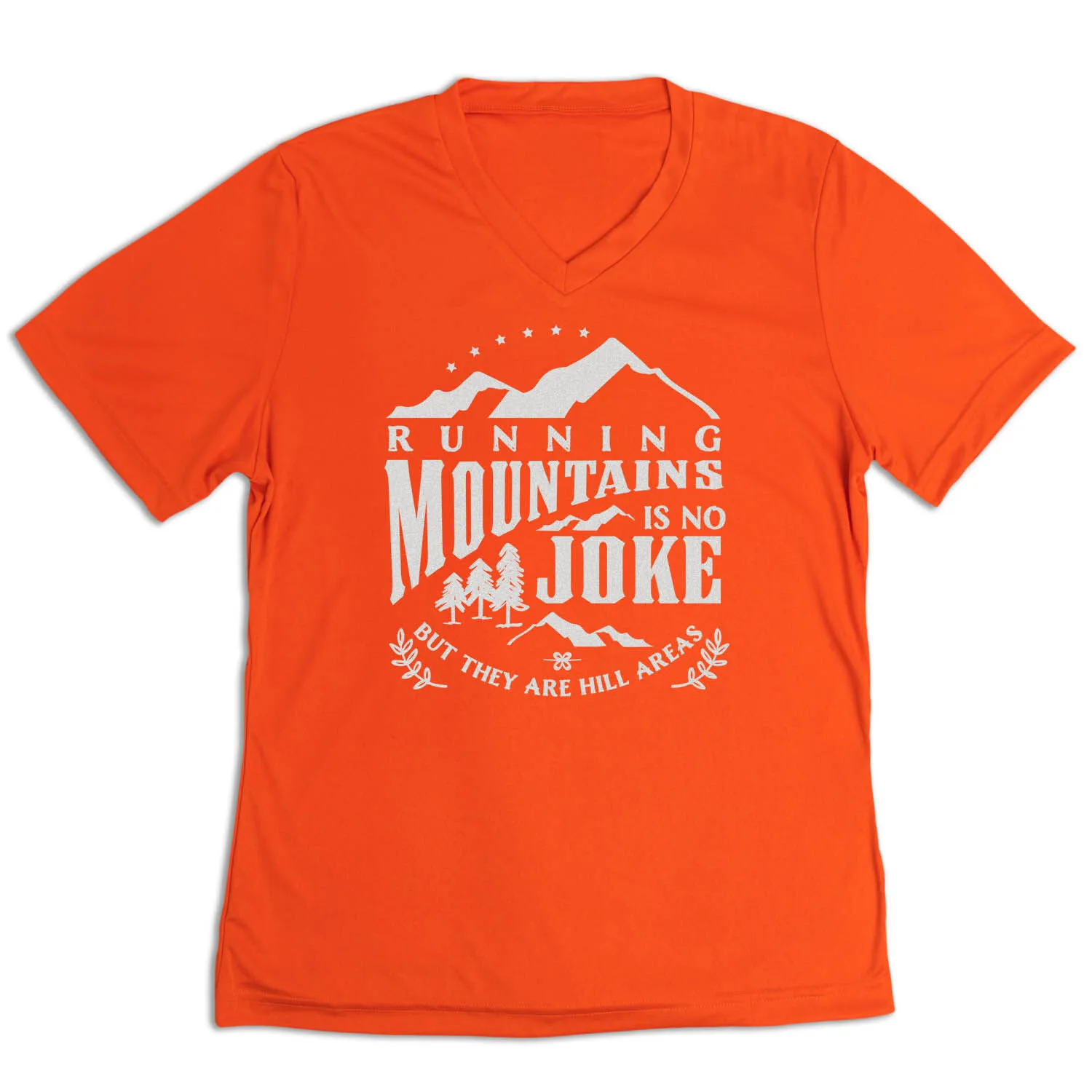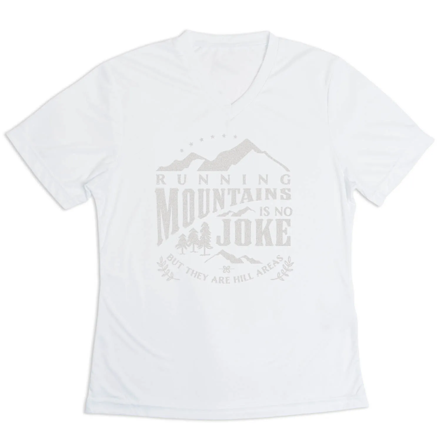 Running mountains is no joke – don’t be afraid to discover those hill[areas] in our women’s short sleeve tech tee. Our V-neck performance tee is made from 100% polyester interlock to keep runners dry and cool. The short sleeve tech tee offers a comfortable and relaxed fit that looks great with any choice of bottoms from leggings and athletic tights to jeans and shorts. This stylish tech tee is perfect for everyday wear and an ideal running gift for any occasion.
