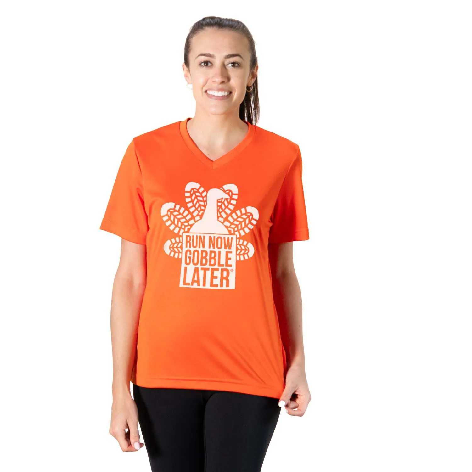Show off your running pride in our women’s short sleeve tech tee featuring a one-of-a-kind bold design inspired by running. Our V-neck performance tee is made from 100% polyester interlock to keep runners dry and cool. The short sleeve tech tee offers a comfortable and relaxed fit that looks great with any choice of bottoms from leggings and athletic tights to jeans and shorts. This stylish tech tee is perfect for everyday wear and an ideal running gift for any occasion.