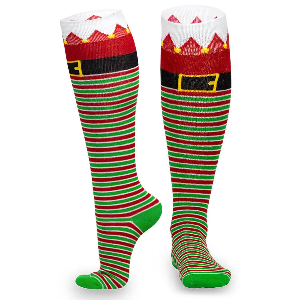 Get into the Christmas spirit and make any outfit more festive with our woven knee high socks, which are great to wear during any athletic activity. These great supportive woven knee socks are also super comfortable and moisture wicking. While being festive your feet will also be dry and supported in our elf knee high socks.